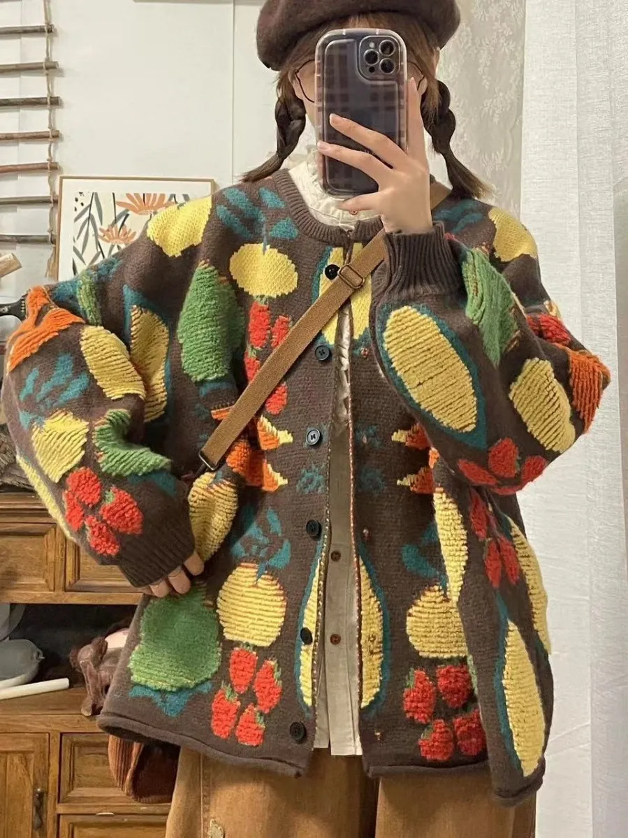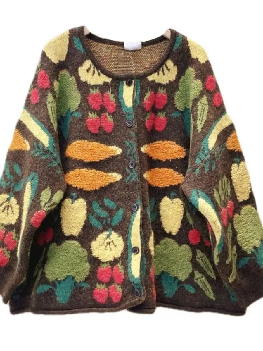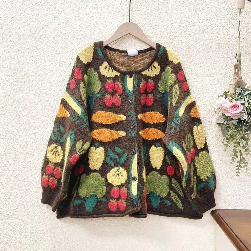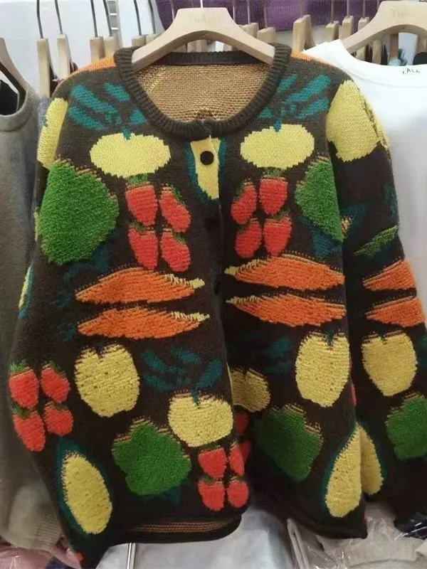 衣都精品- 2023新款甜美蔬菜花毛巾繡休閒寬鬆外套