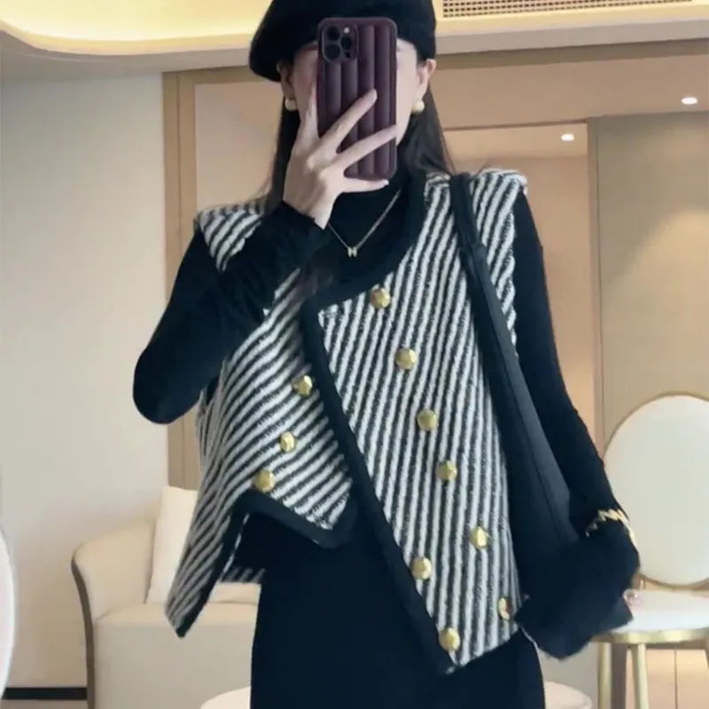 衣都精品- 2023新款小香風顯瘦雙排扣馬甲外套