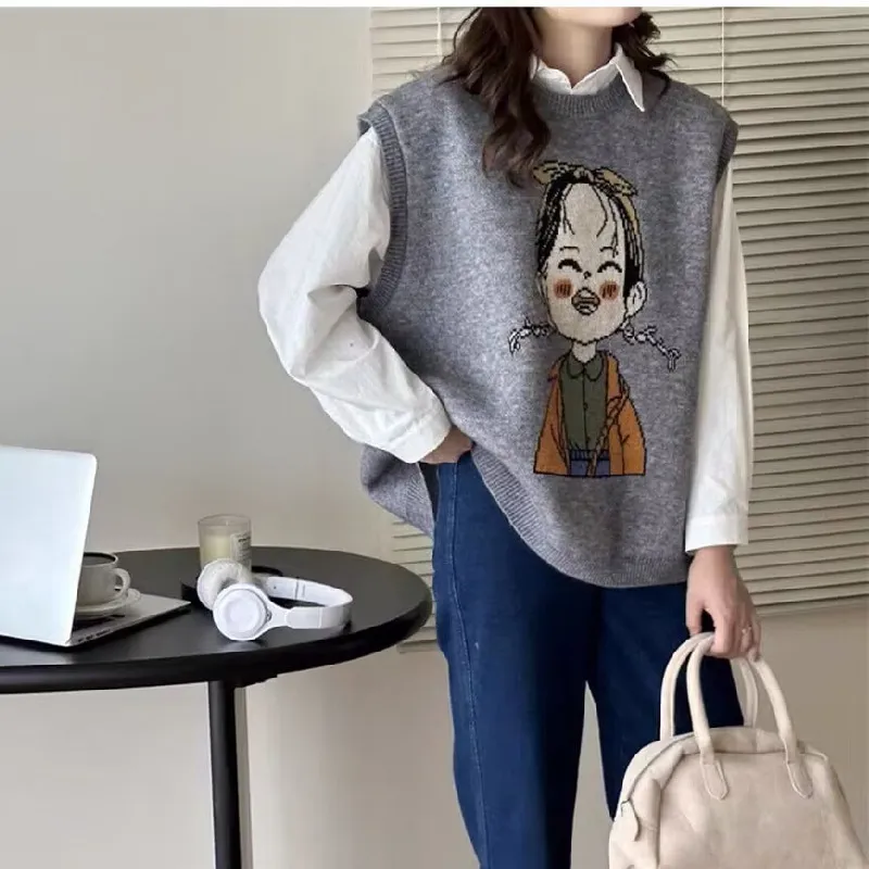 衣都精品- 2023新款時尚寬鬆圓領無袖毛衣上衣