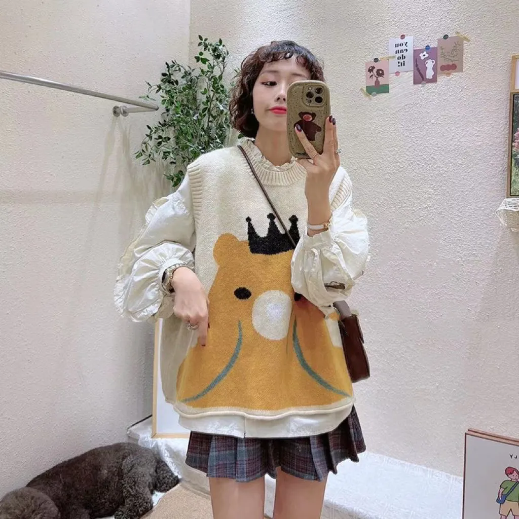 衣都精品- 2023新款時尚圓領卡通寬鬆針織上衣