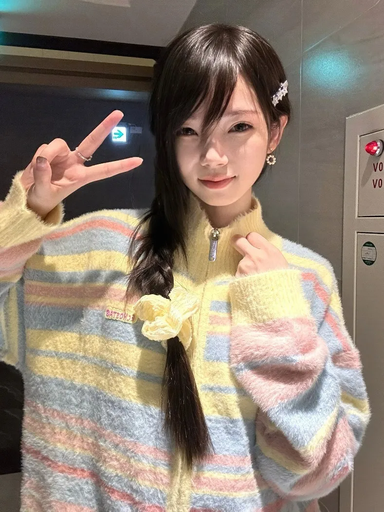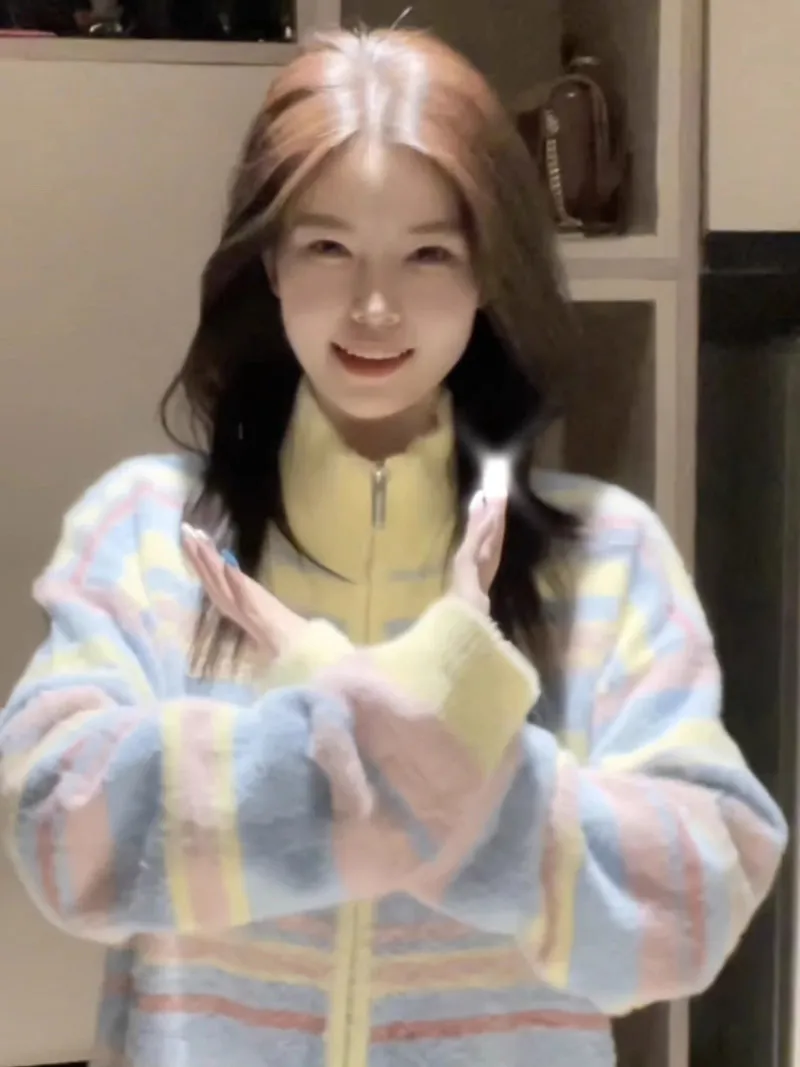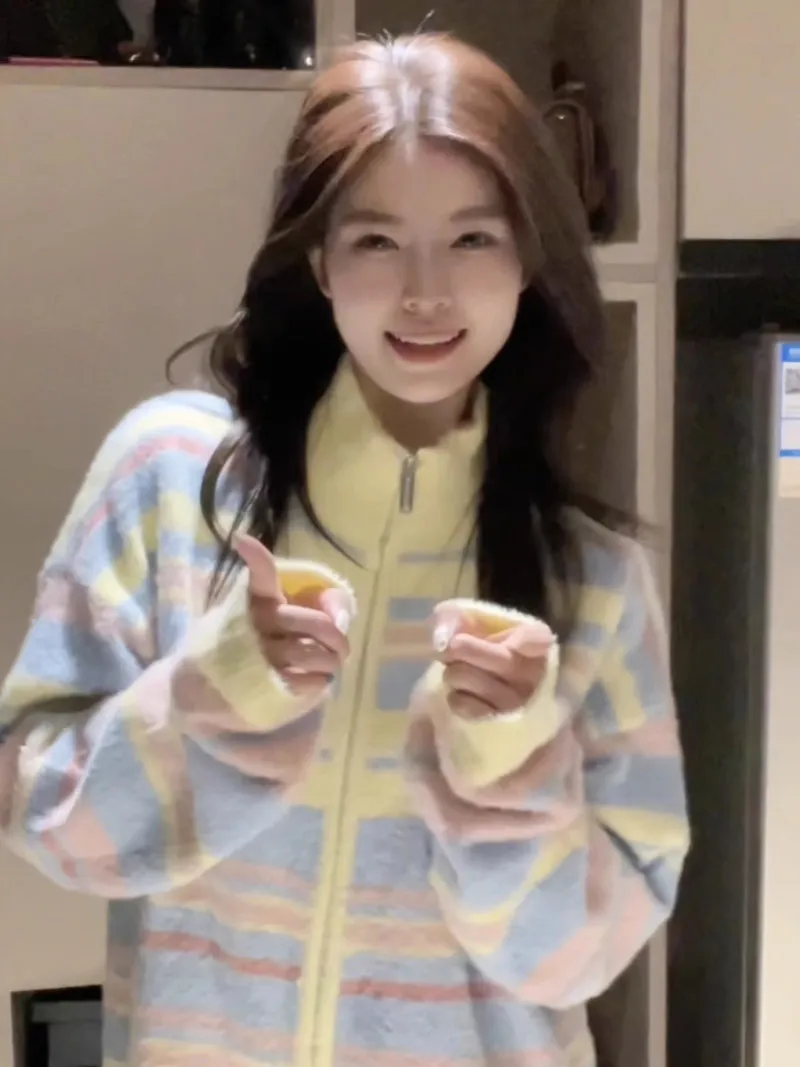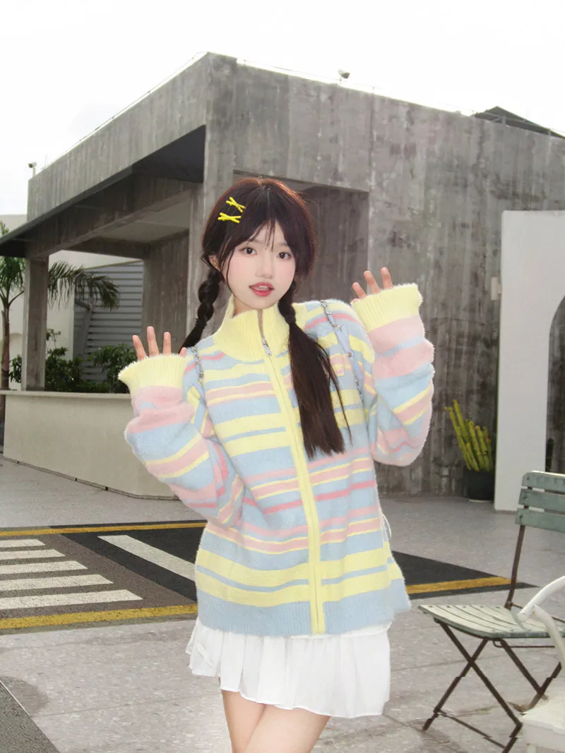 衣都精品- 2023新款彩虹條紋半高領開衫針織外套