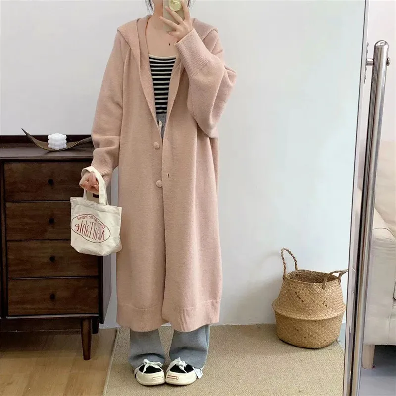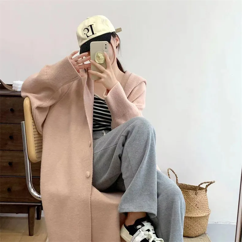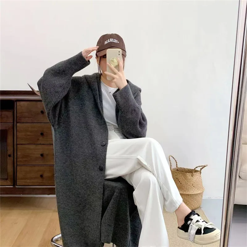 衣都精品- 2023新款韓版寬鬆連帽單排扣毛衣外套
