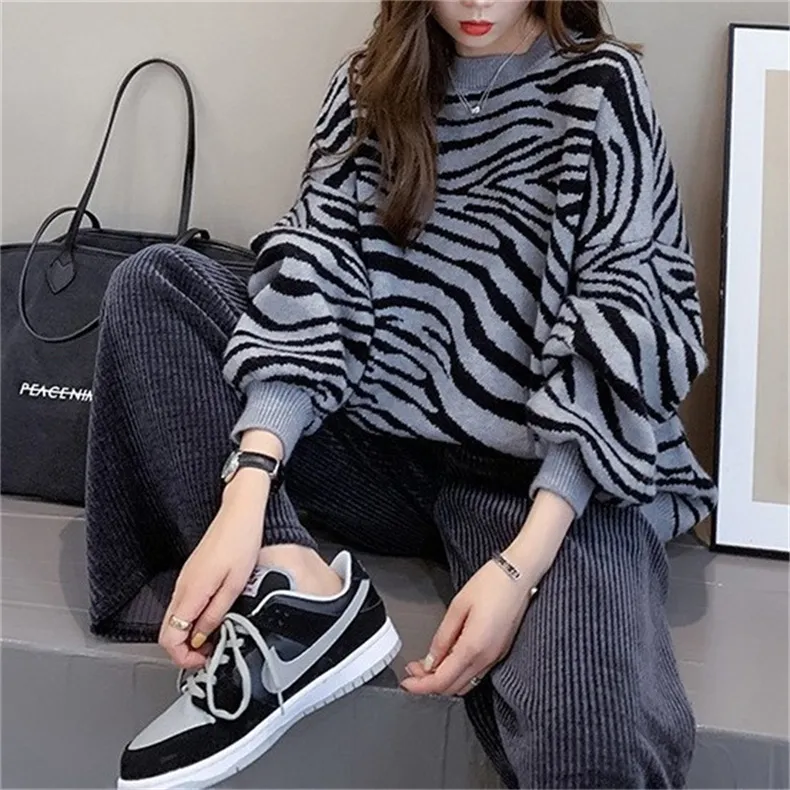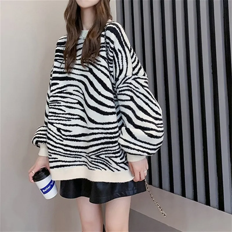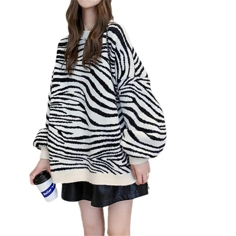 衣都精品- 2023新款韓版斑馬紋套頭圓領毛衣