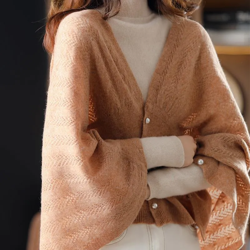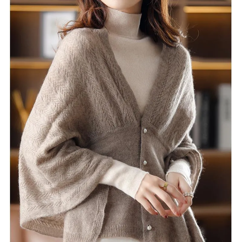衣都精品- 2023新款時尚寬鬆中長款羊毛斗篷披肩外套