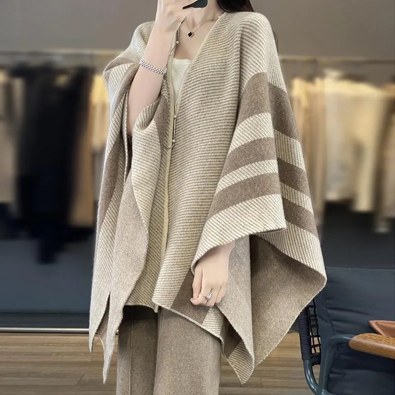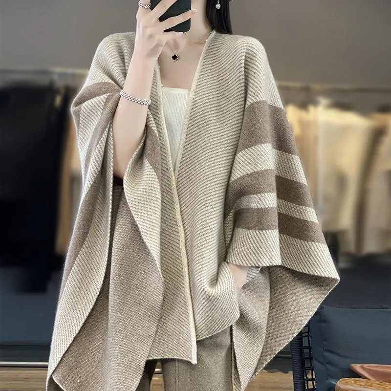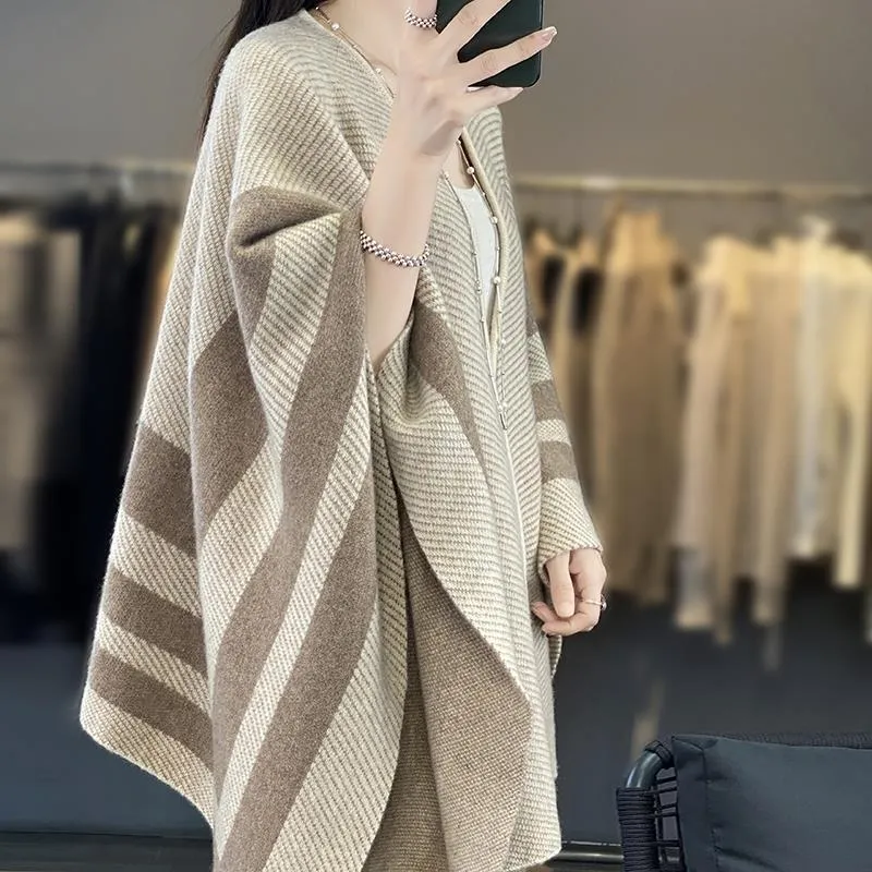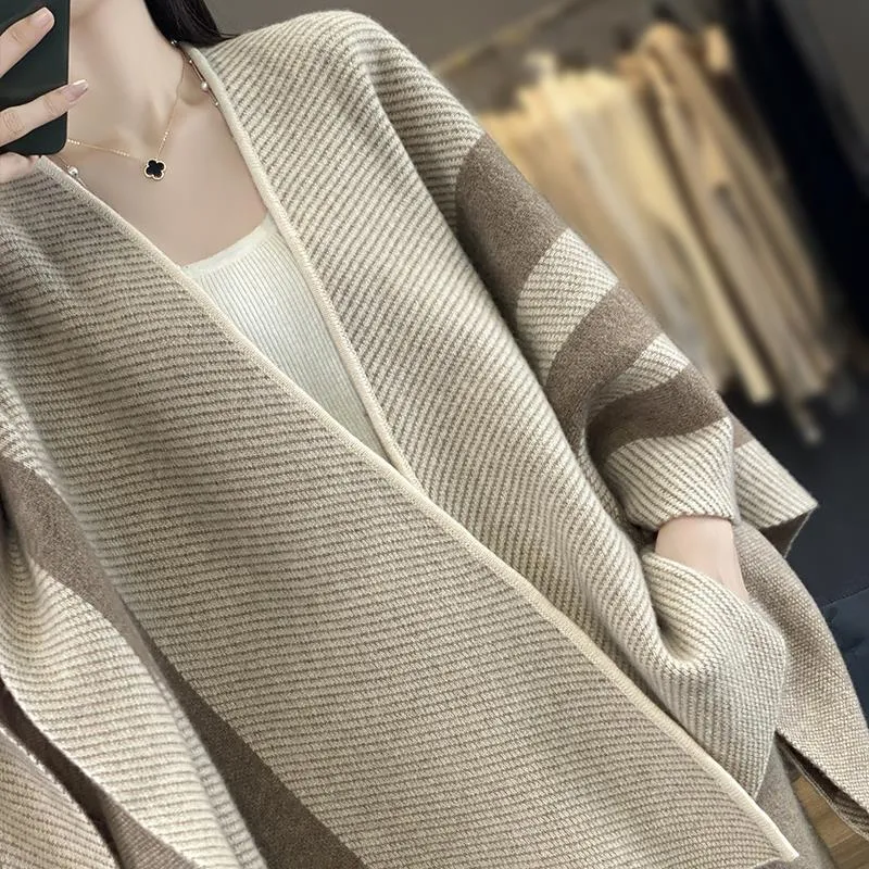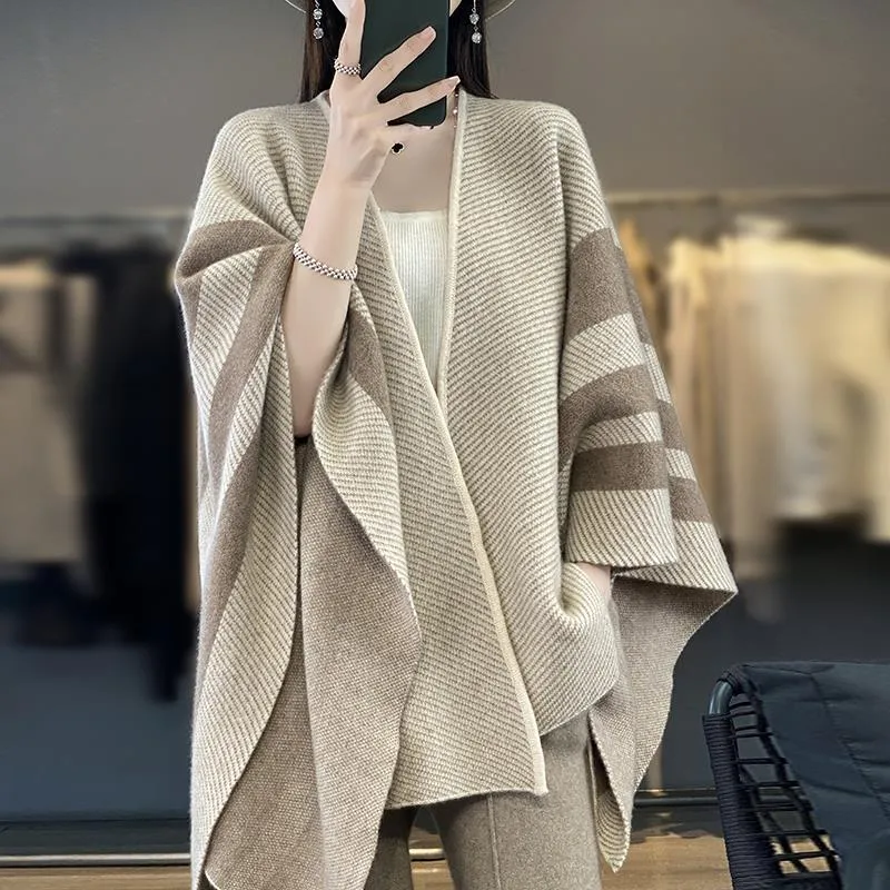 衣都精品- 2023新款慵懶風羊毛開衫披肩寬鬆斗篷外套