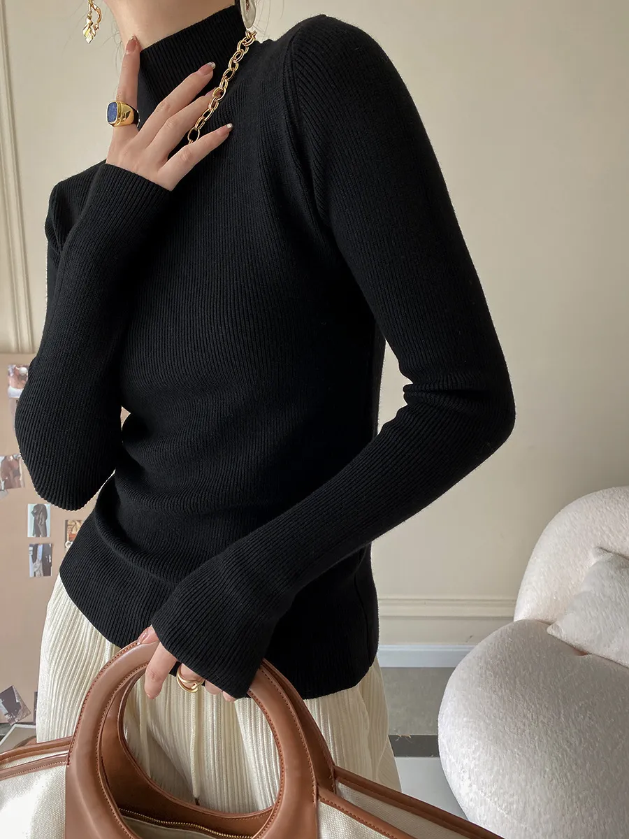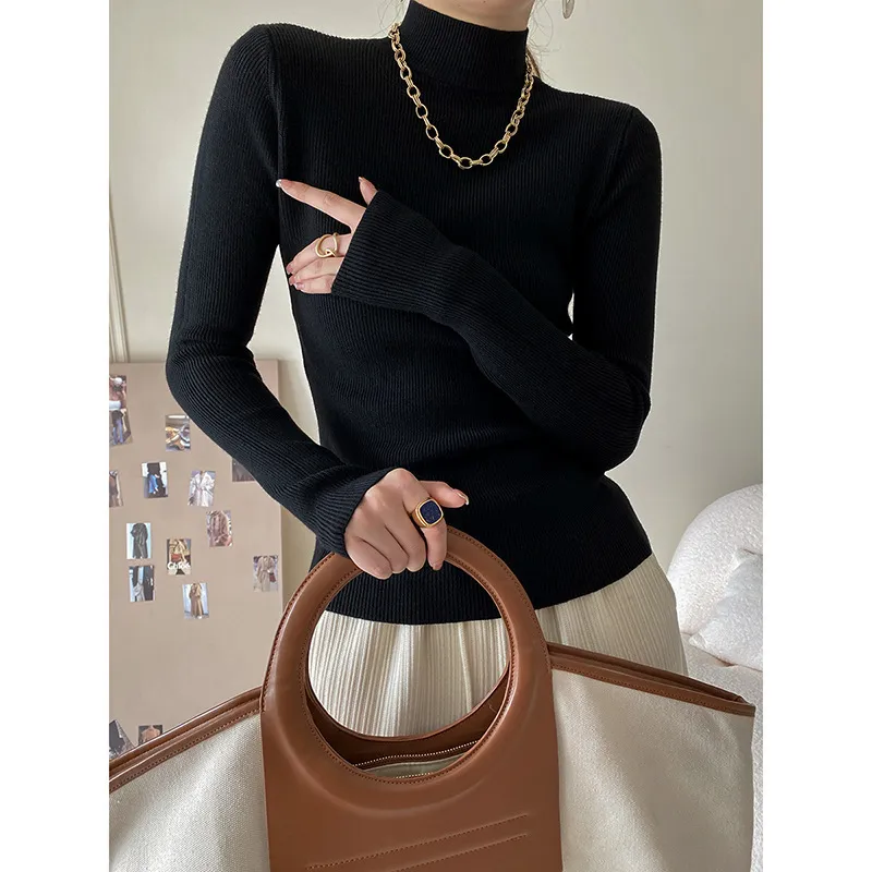 衣都精品- 2023新款法式半高領長袖修身針織衫