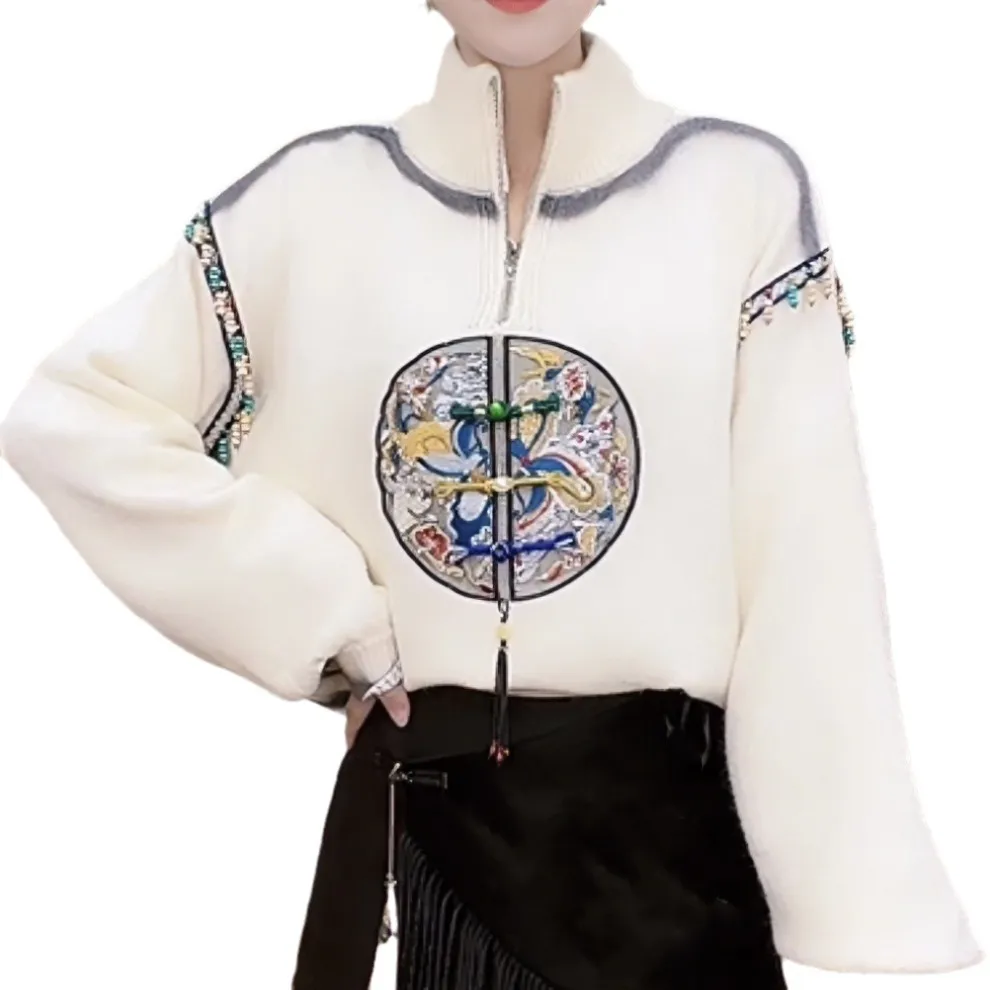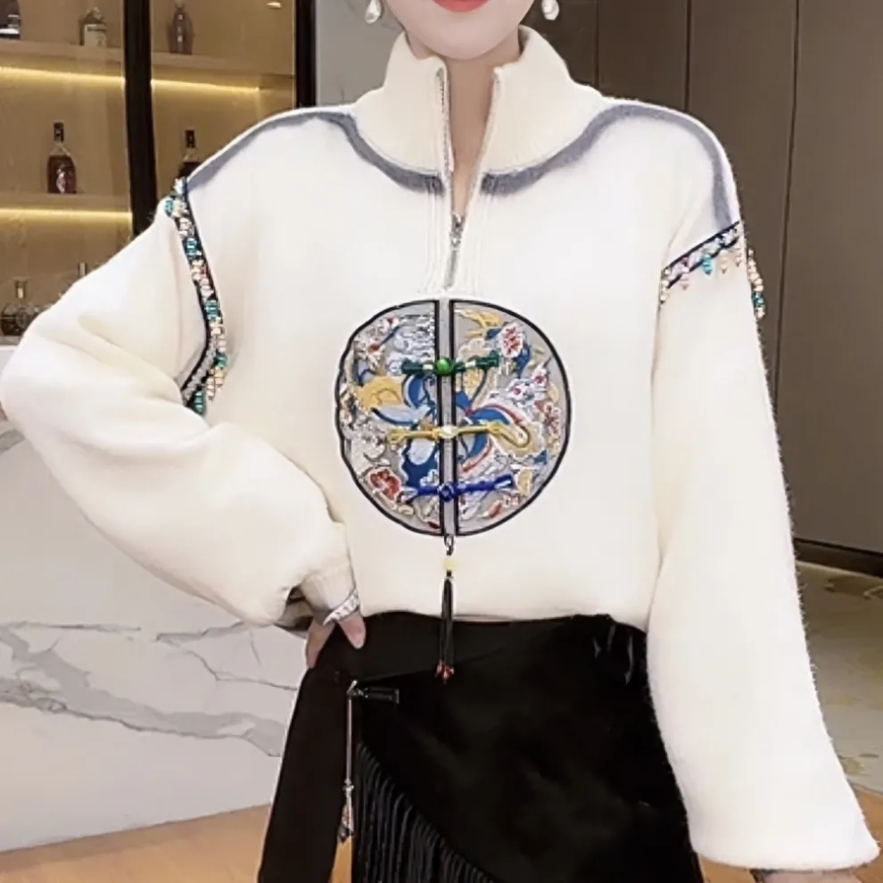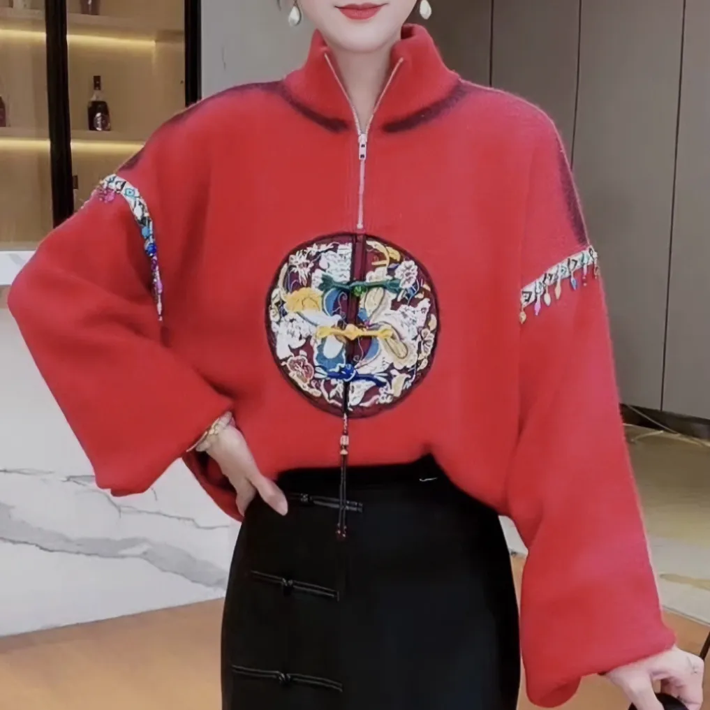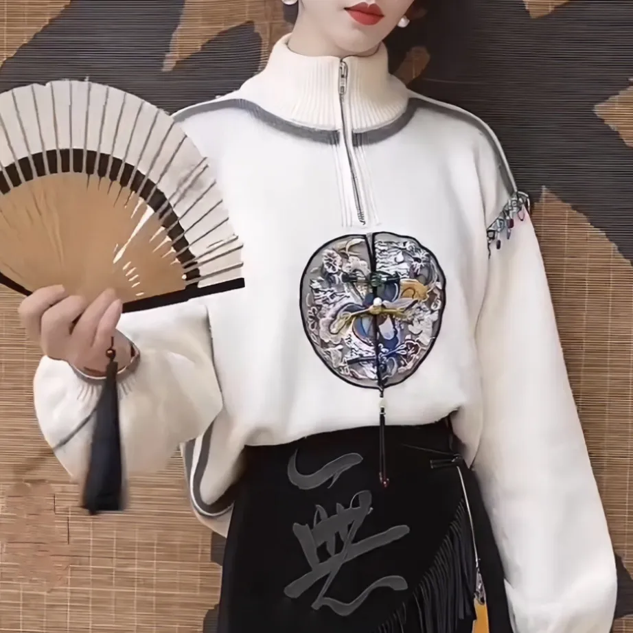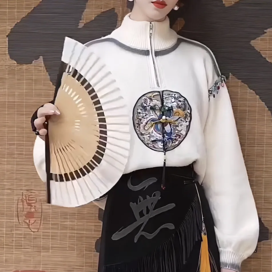 衣都精品- 2023新款中式刺繡復古撞色盤扣寬鬆上衣