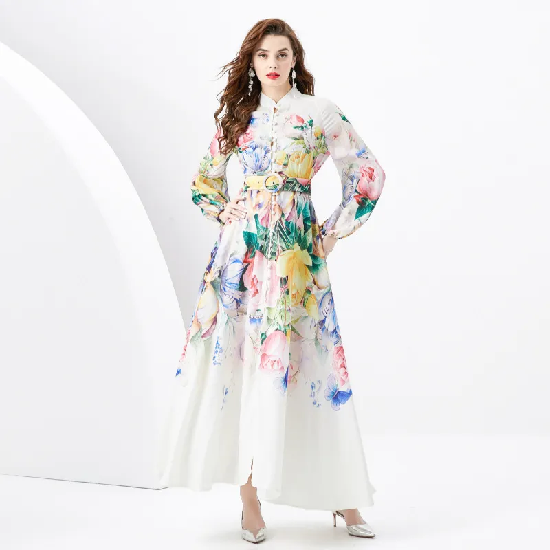 衣都精品- 2023新款時尚宮廷風復古印花立領大擺連衣裙