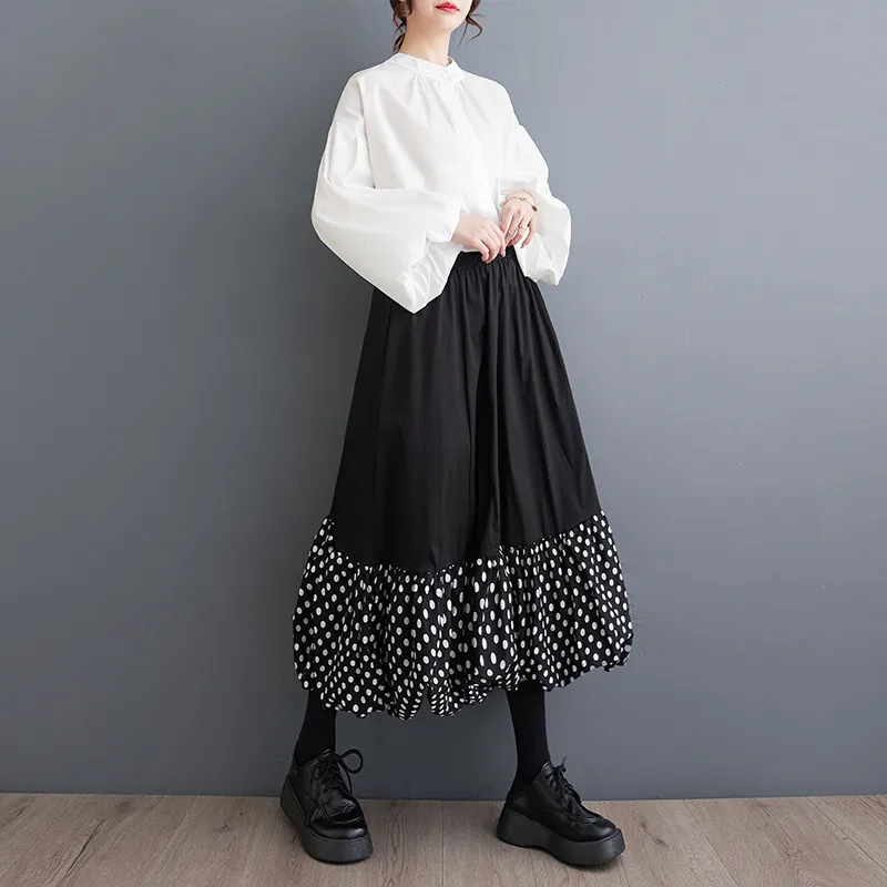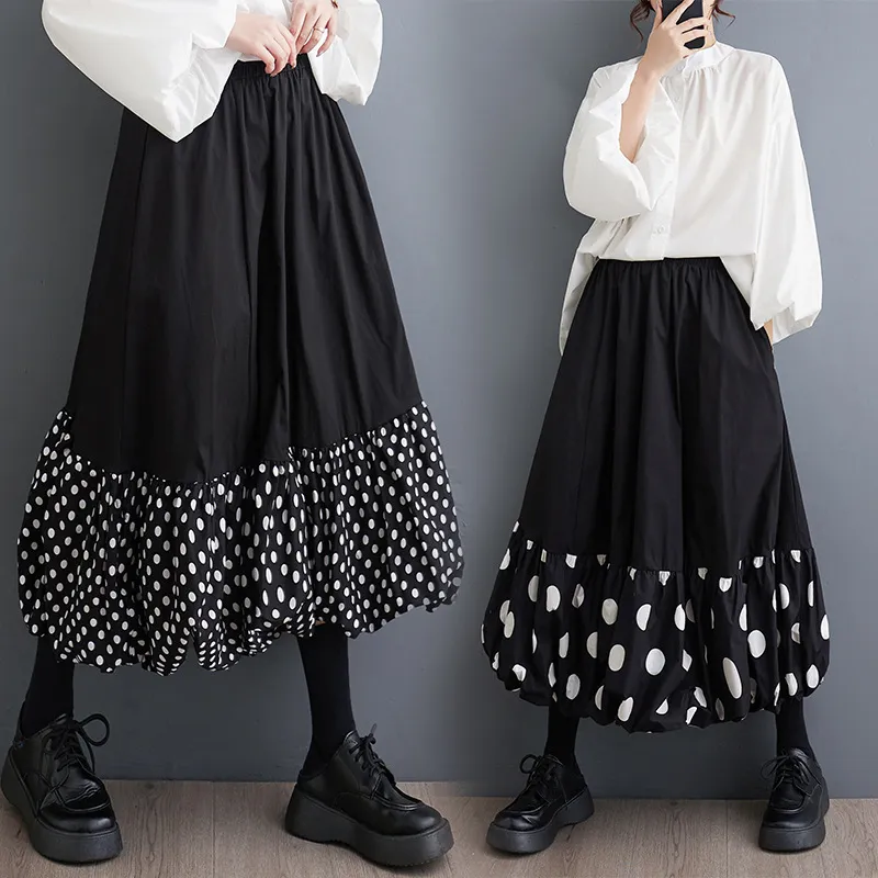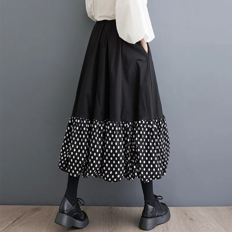 衣都精品- 新款文藝波點拼接蓬蓬鬆緊腰半身裙