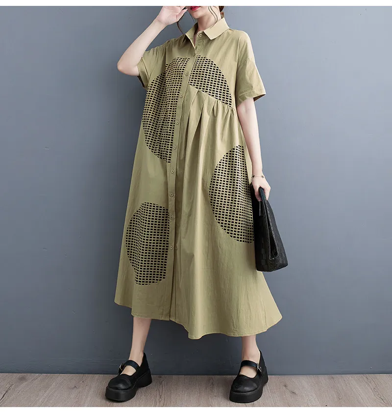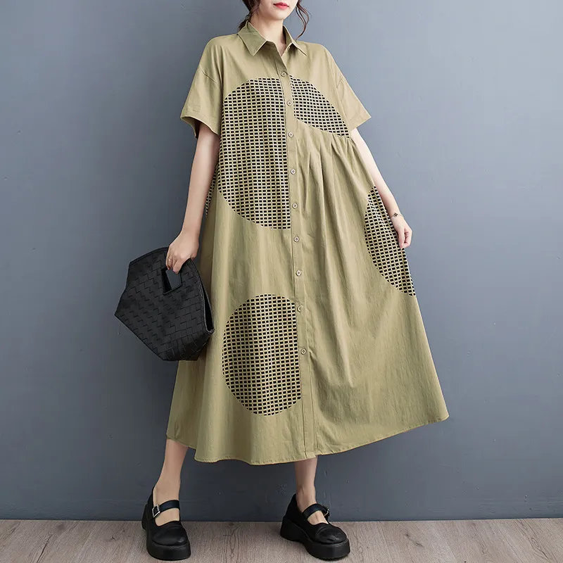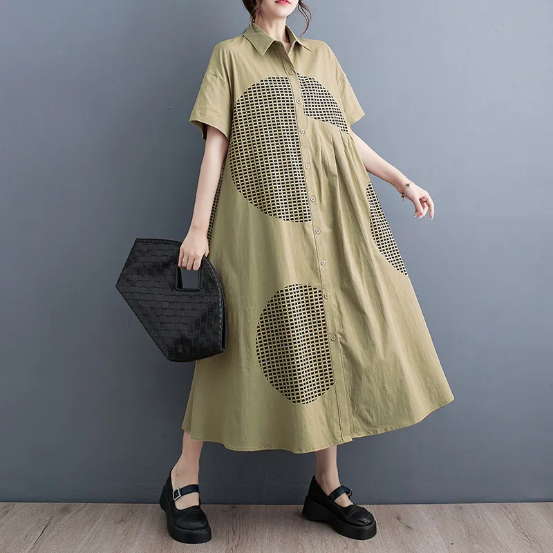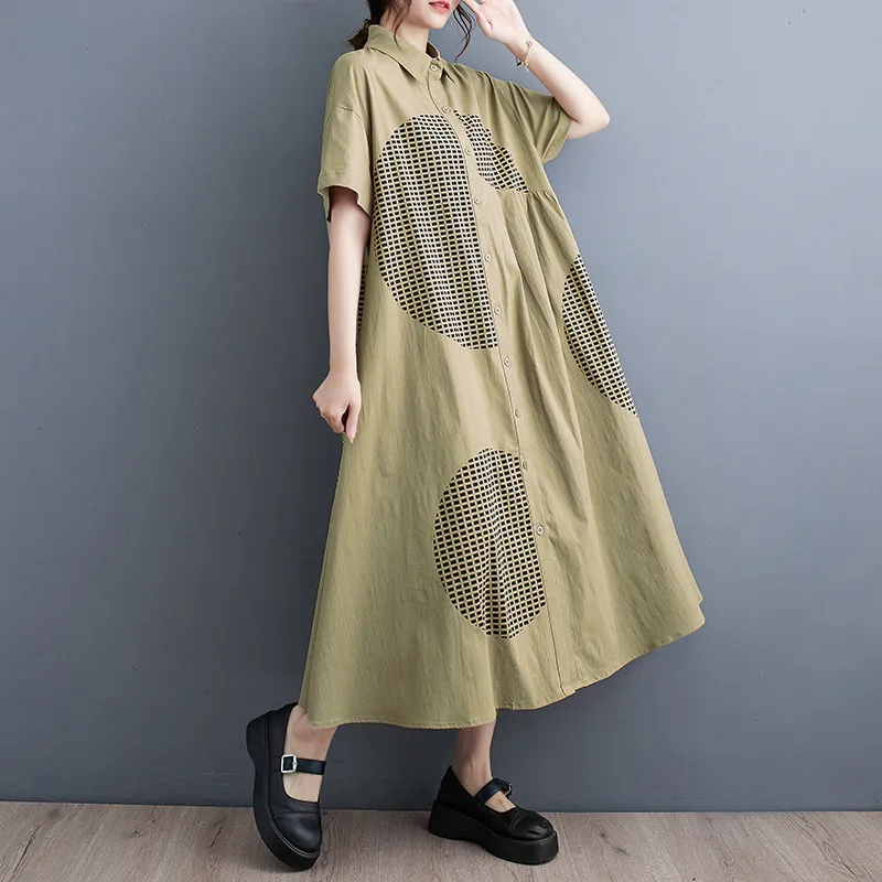 衣都精品- 新款復古文藝寬鬆大碼印花拼接連衣裙