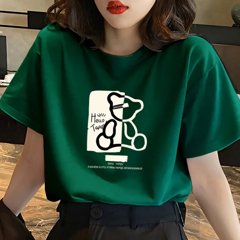 衣都精品- 新款純棉大碼寬鬆慵懶風印花小熊上衣