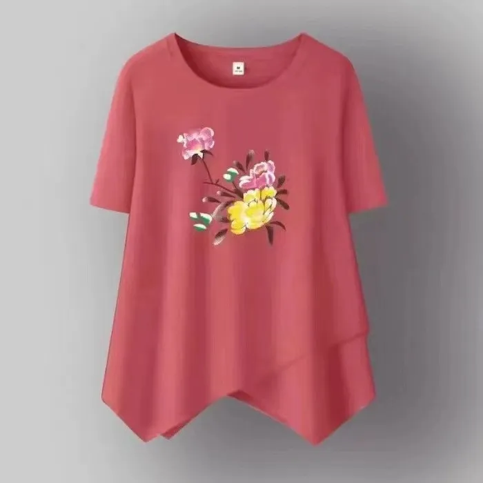 衣都精品- 新款休閒顯瘦遮肚圓領印花上衣