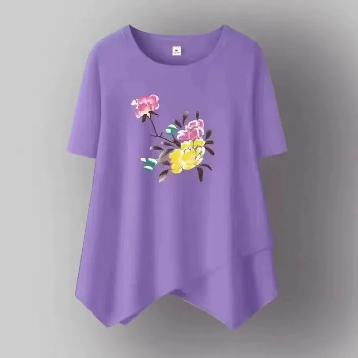 衣都精品- 新款休閒顯瘦遮肚圓領印花上衣