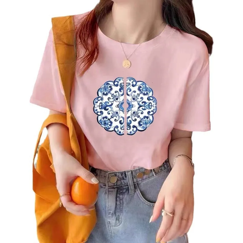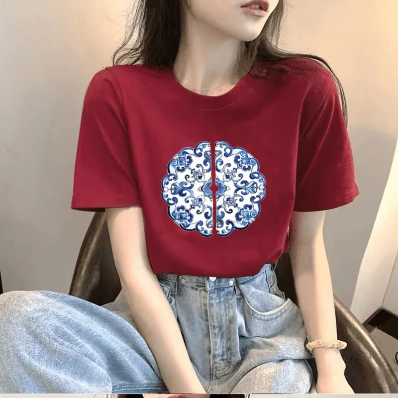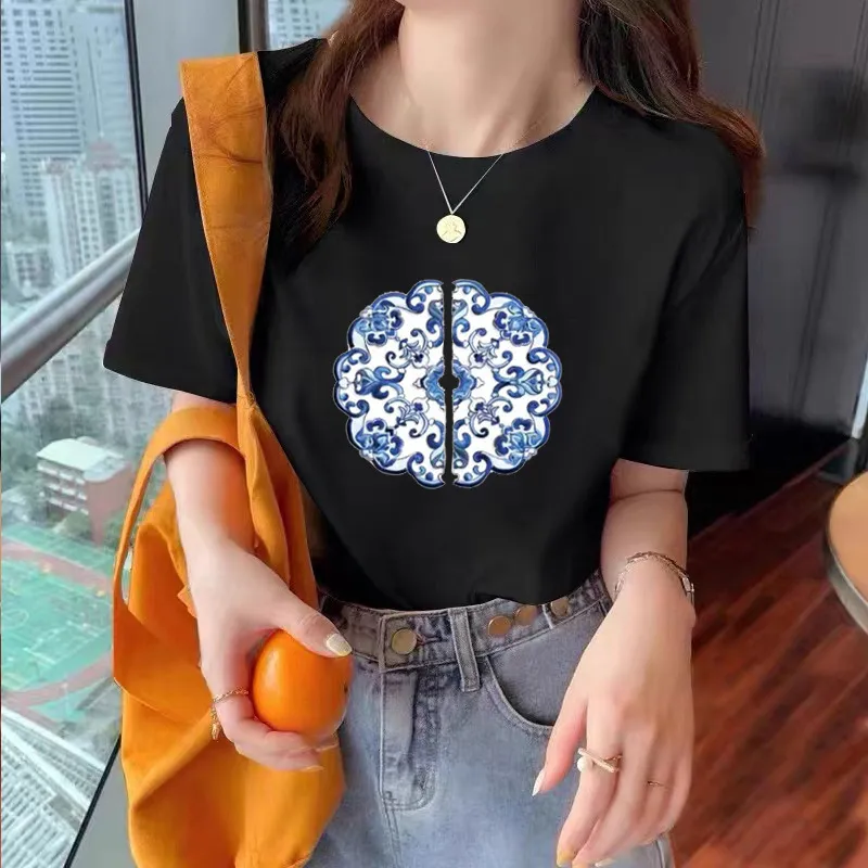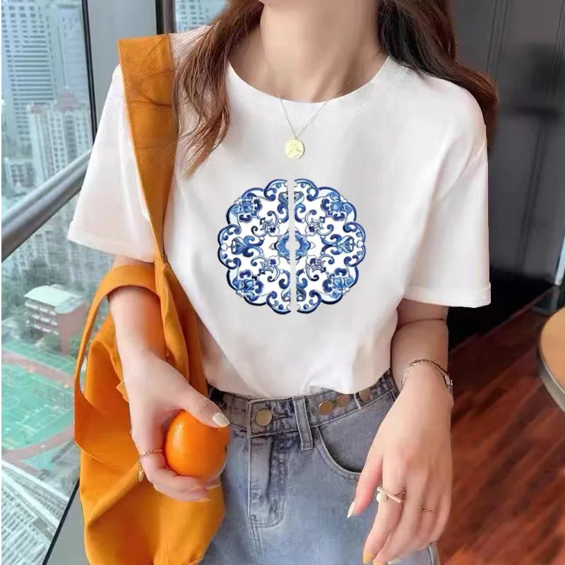 衣都精品- 新款休閒顯瘦遮肚圓領印花上衣