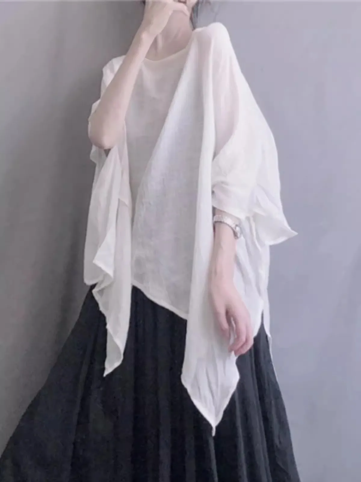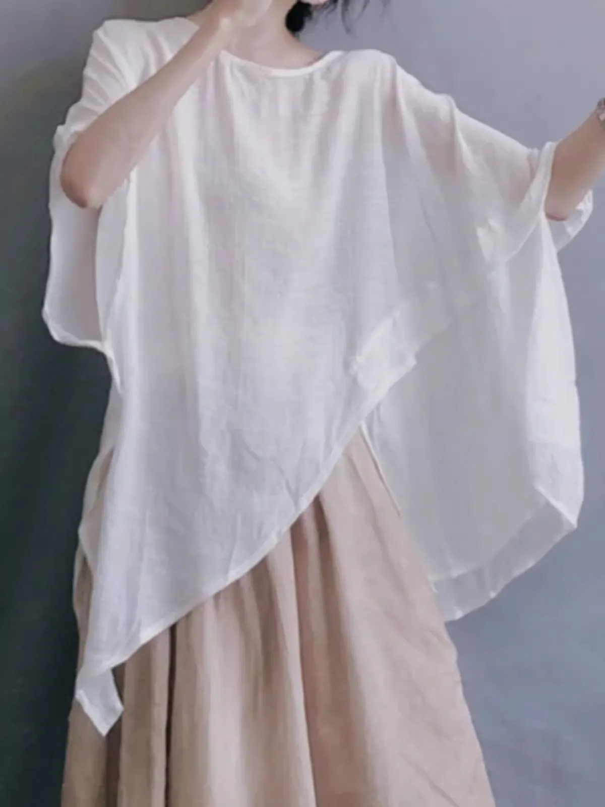衣都精品- 新款設計感純色不規則圓領顯瘦蝙蝠袖上衣