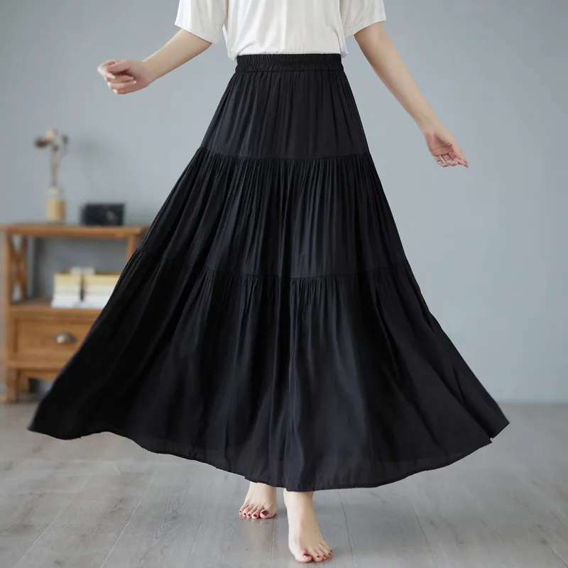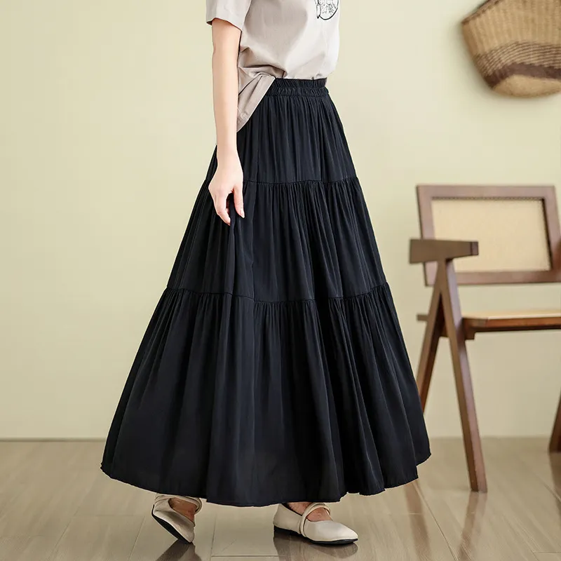 衣都精品- 新款韓版法式度假氣質壓褶鬆緊腰半身裙