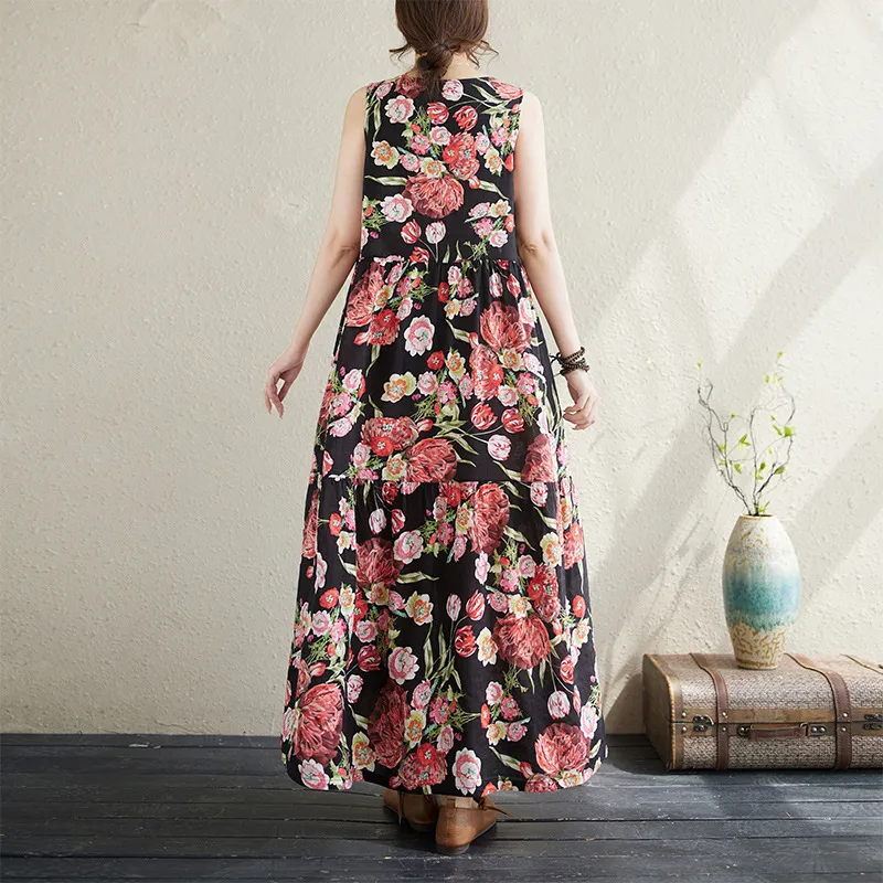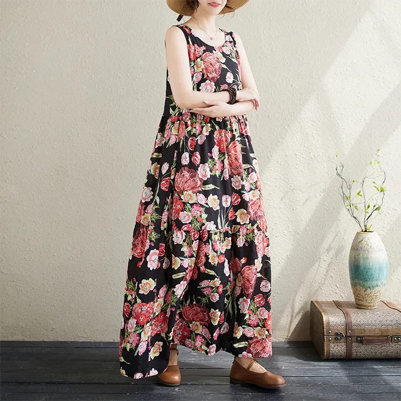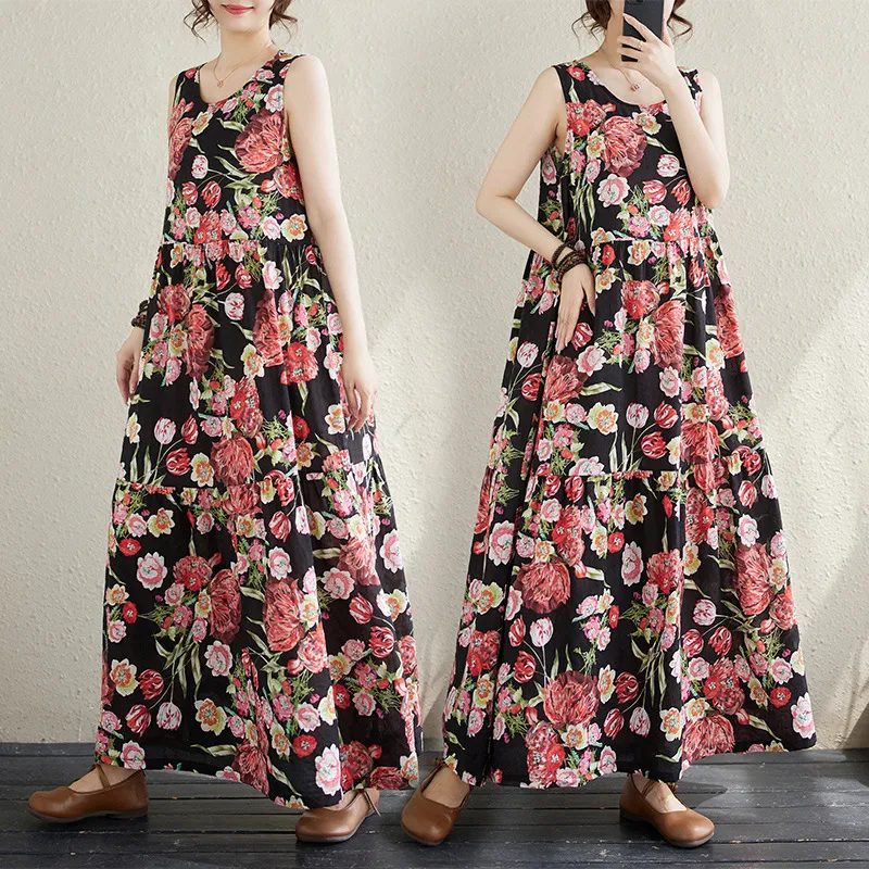 衣都精品- 新款文藝復古套頭無袖寬鬆大碼背心裙