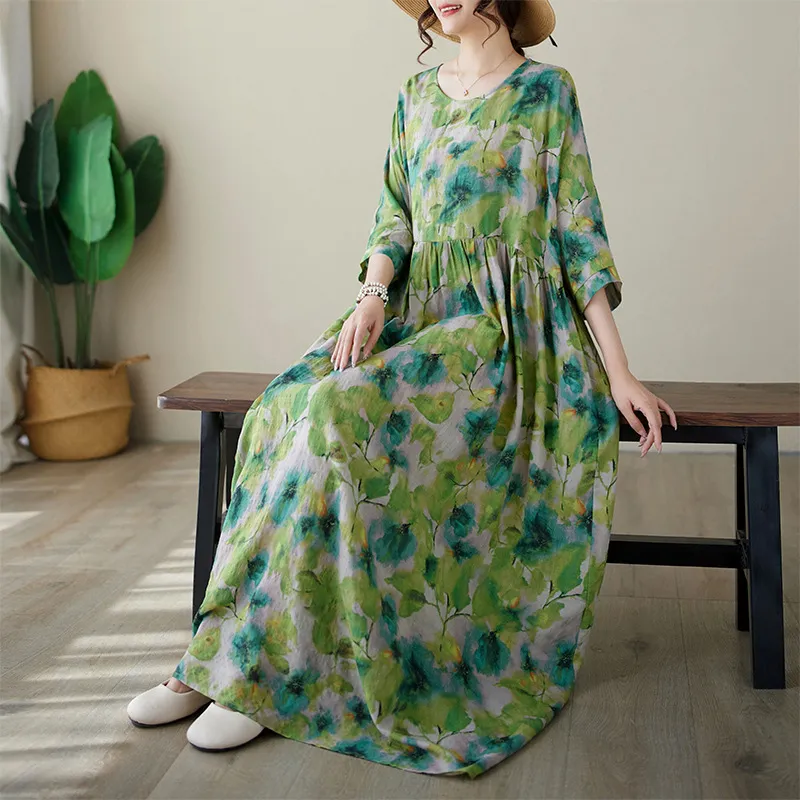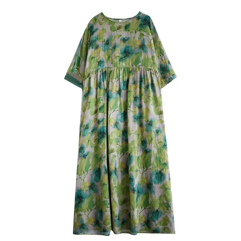 衣都精品- 新款民族風圓領短袖寬鬆顯瘦印花連衣裙