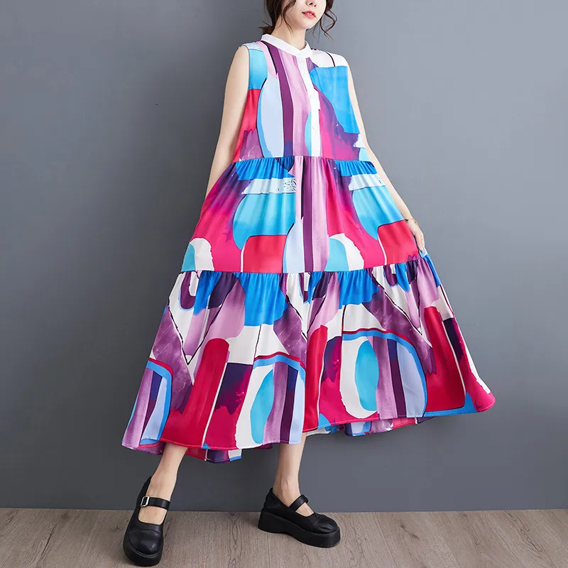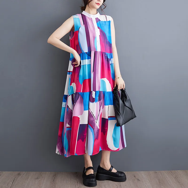 衣都精品- 新款文藝復古套頭無袖寬鬆大碼背心裙