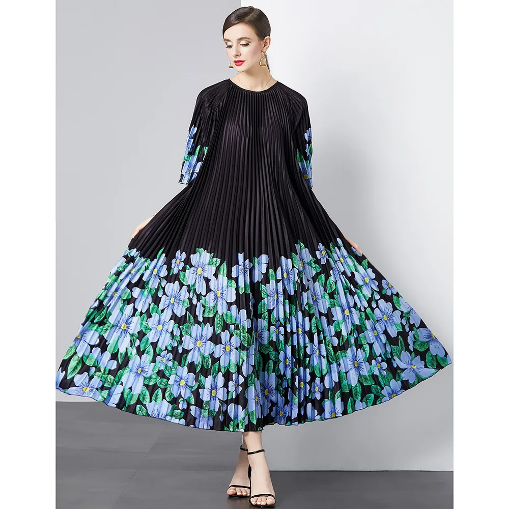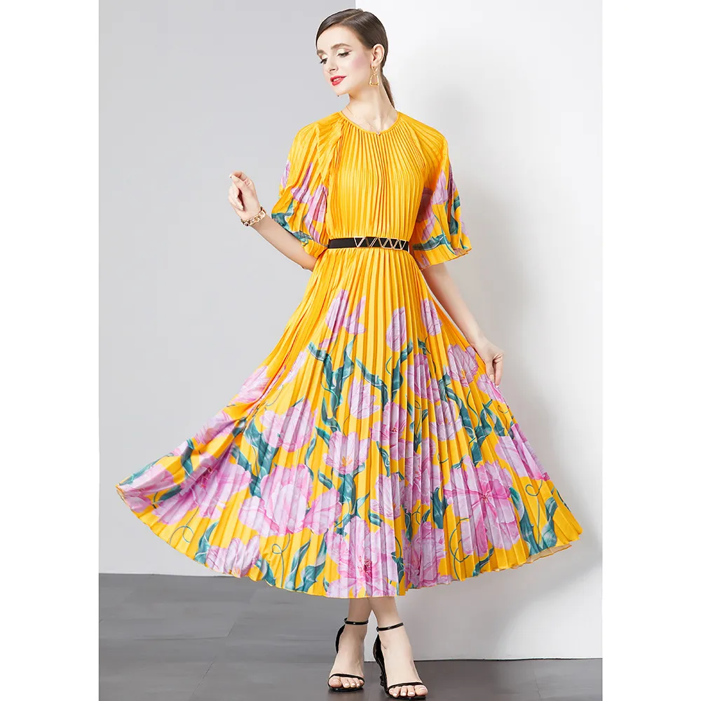 衣都精品- 新款韓版時尚氣質中袖百褶大擺連衣裙