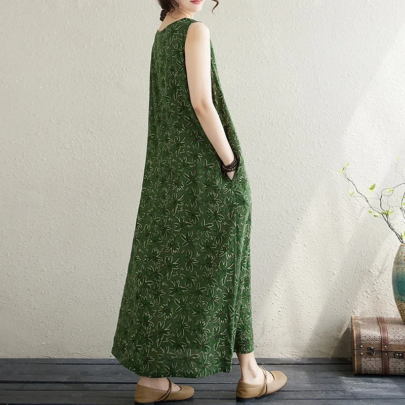 衣都精品- 新款大碼文藝寬鬆印花無袖背心裙
