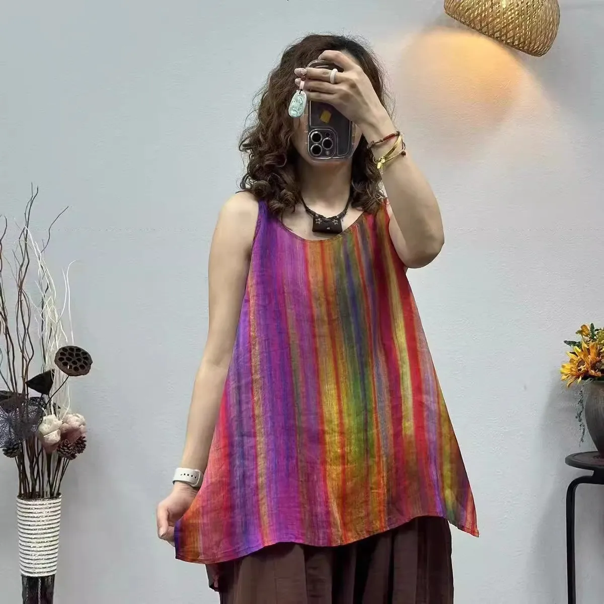 衣都精品- 新款復古減齡彩色條紋吊帶背心上衣
