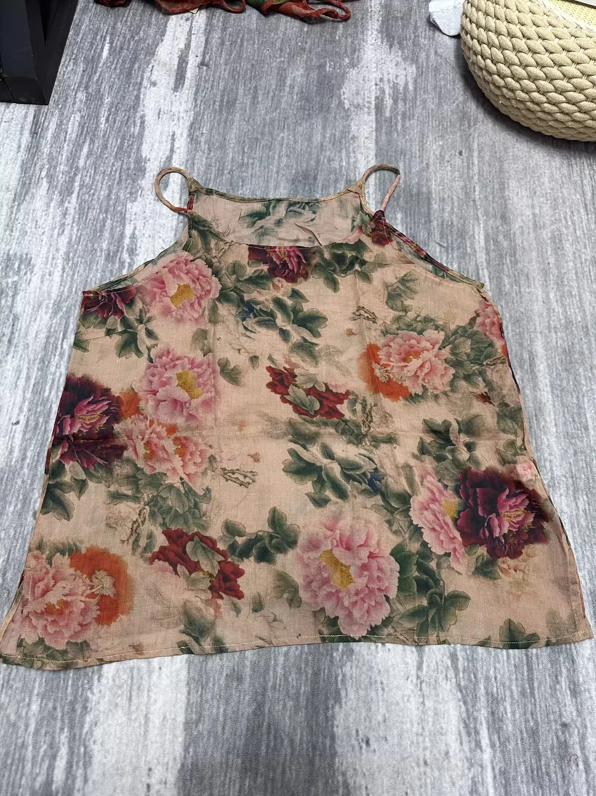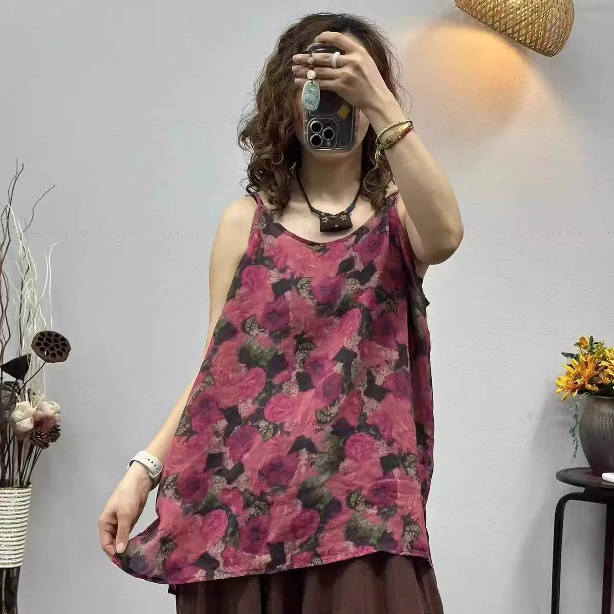 衣都精品- 新款寬鬆東北大花無袖背心裙