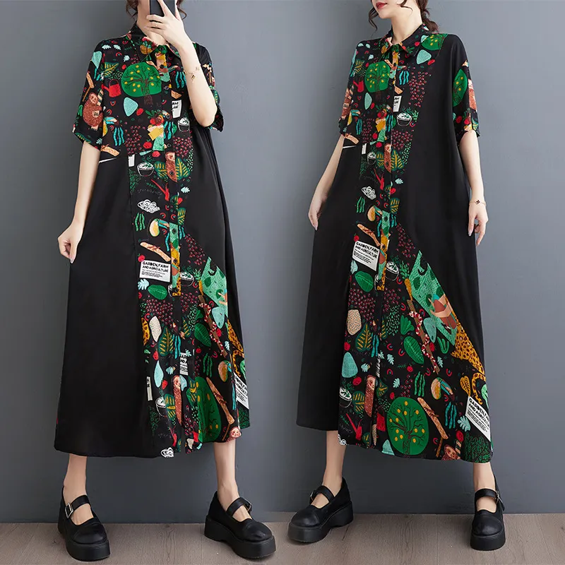 衣都精品- 新款寬鬆大碼洋氣拼接中長款連衣裙
