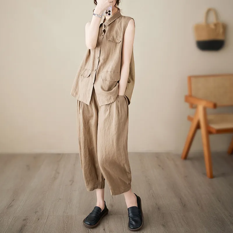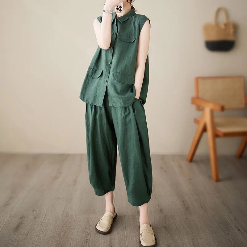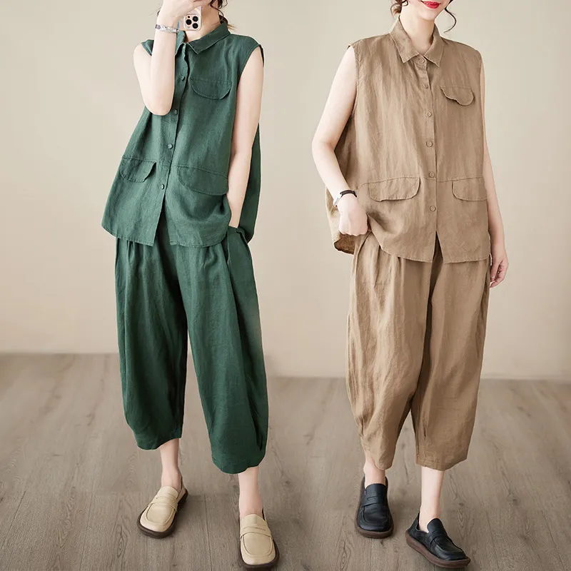 衣都精品- 新款時尚寬鬆馬甲背心+大碼七分哈倫褲兩件套裝