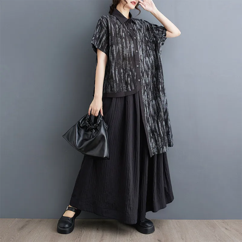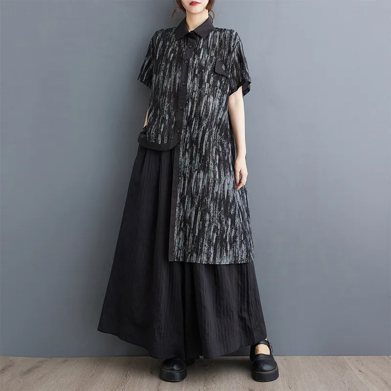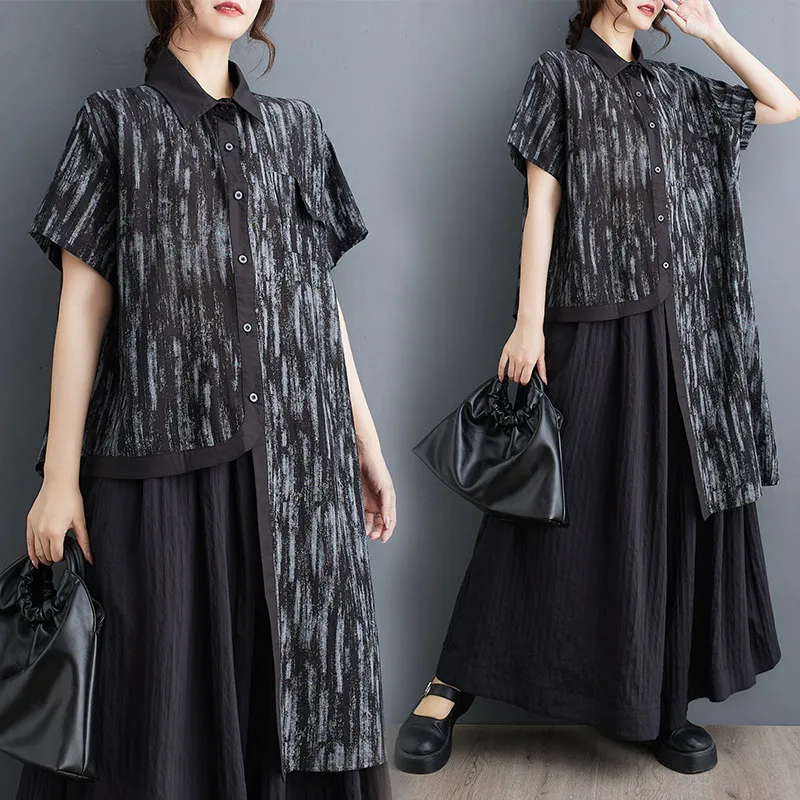 衣都精品- 新款不規則寬鬆中長款時尚印花上衣