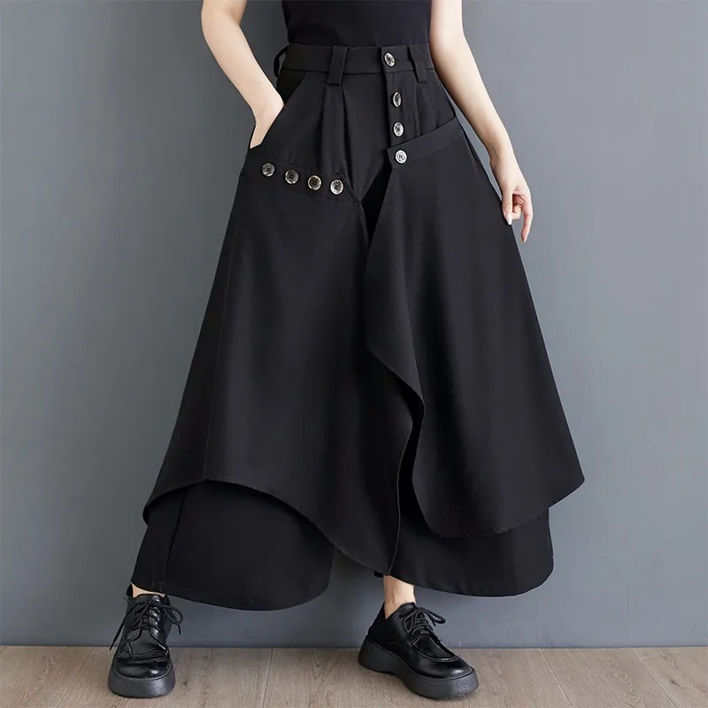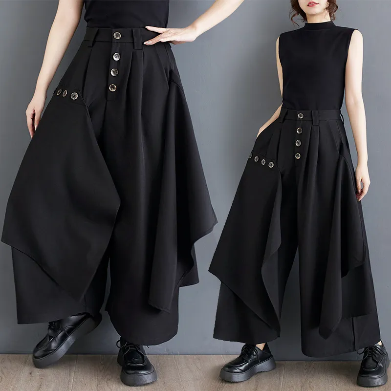 衣都精品- 新款暗黑設計款休閒不規則百搭闊腿褲