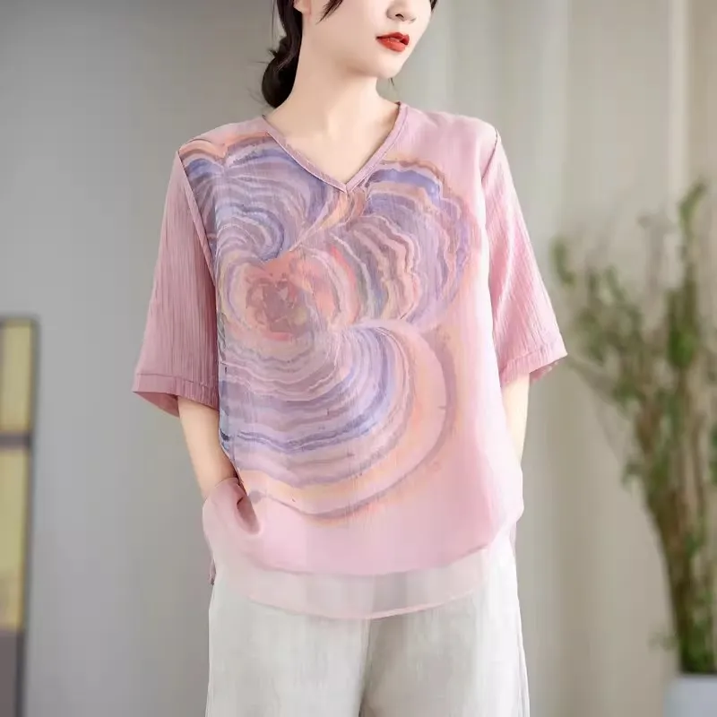 衣都精品- 新款寬鬆氣質V領遮肉顯瘦套頭上衣