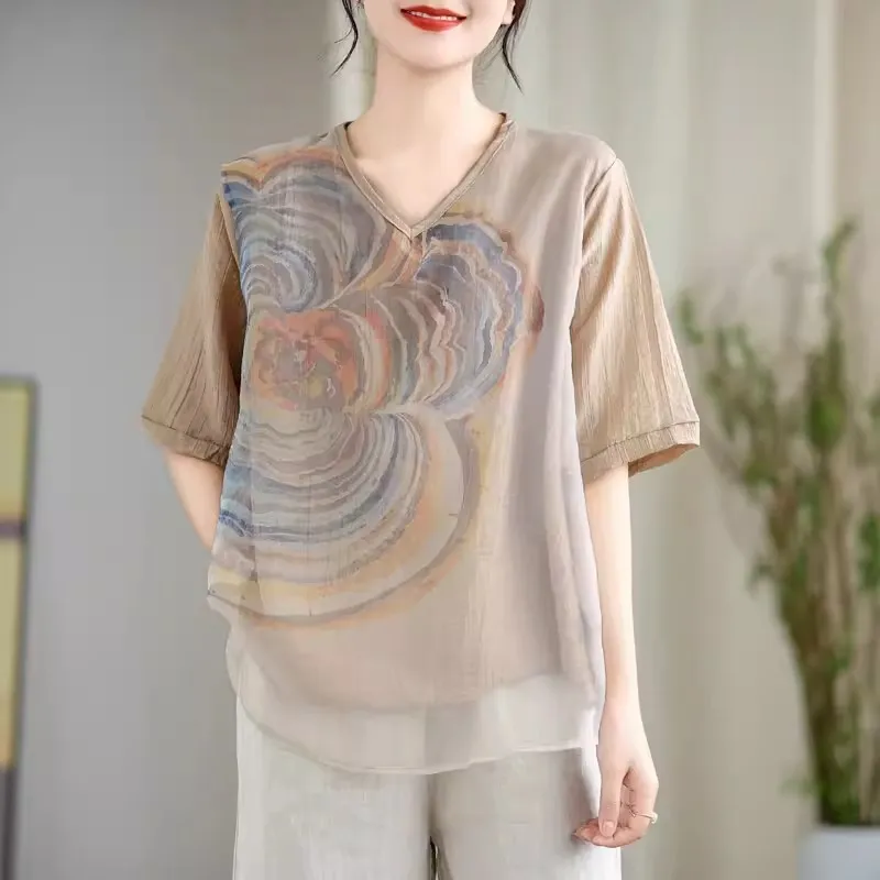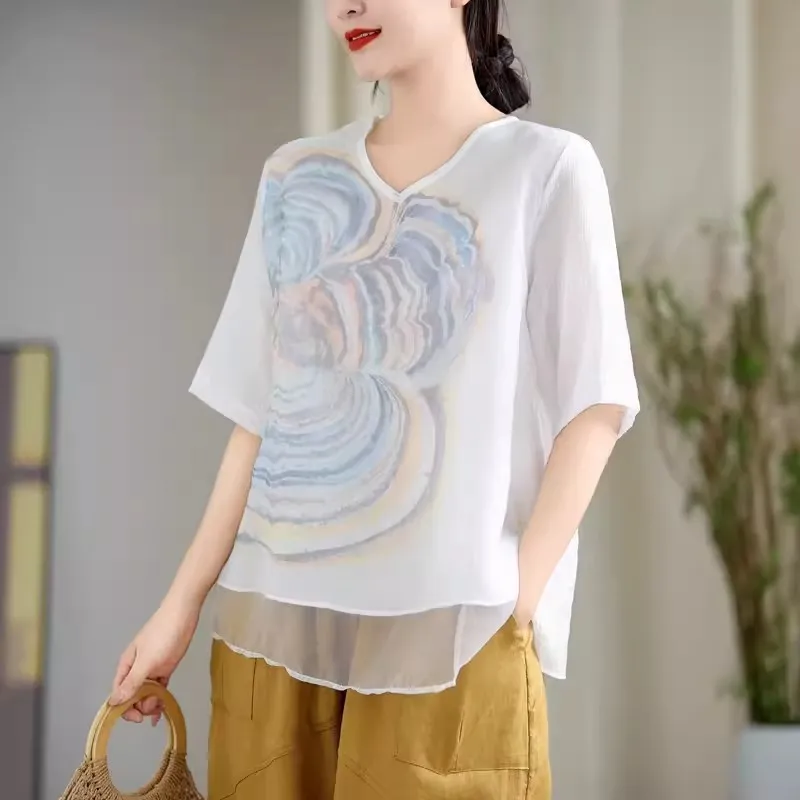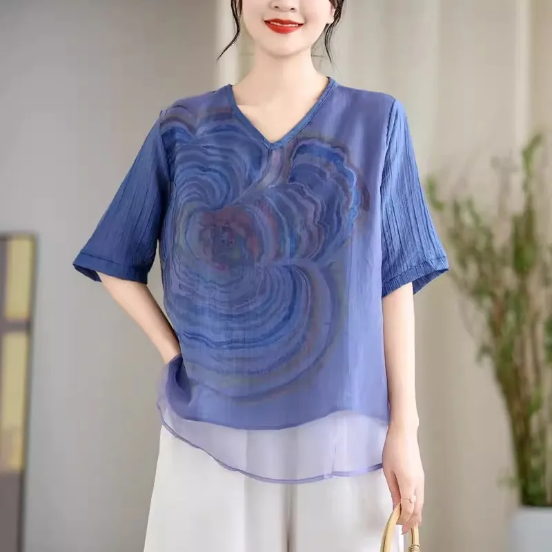 衣都精品- 新款不規則寬鬆中長款時尚印花上衣