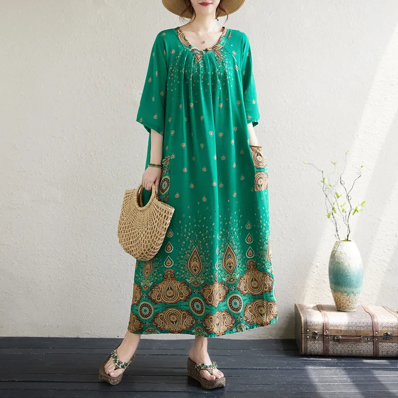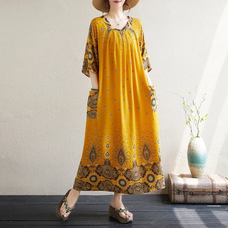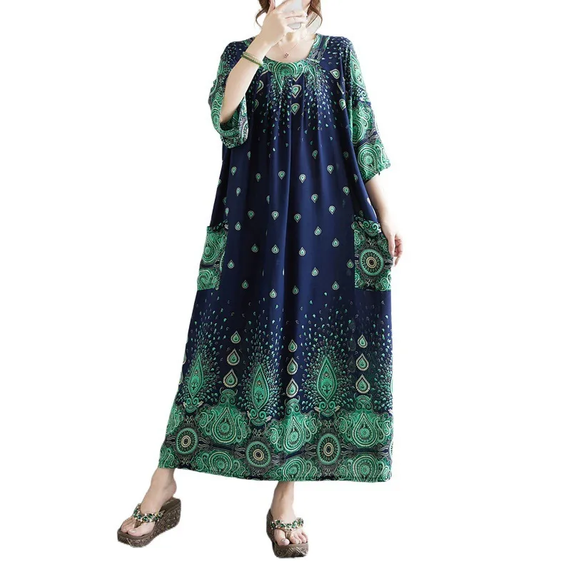 衣都精品- 新款大碼文藝寬鬆花色遮肉顯瘦連衣裙