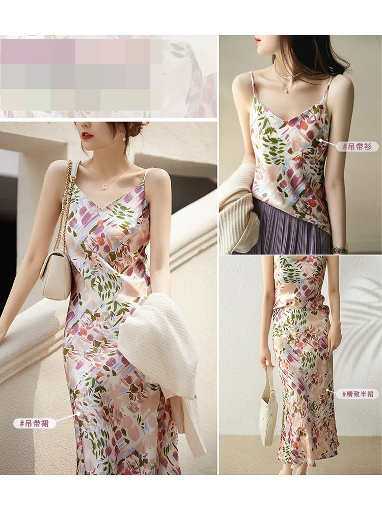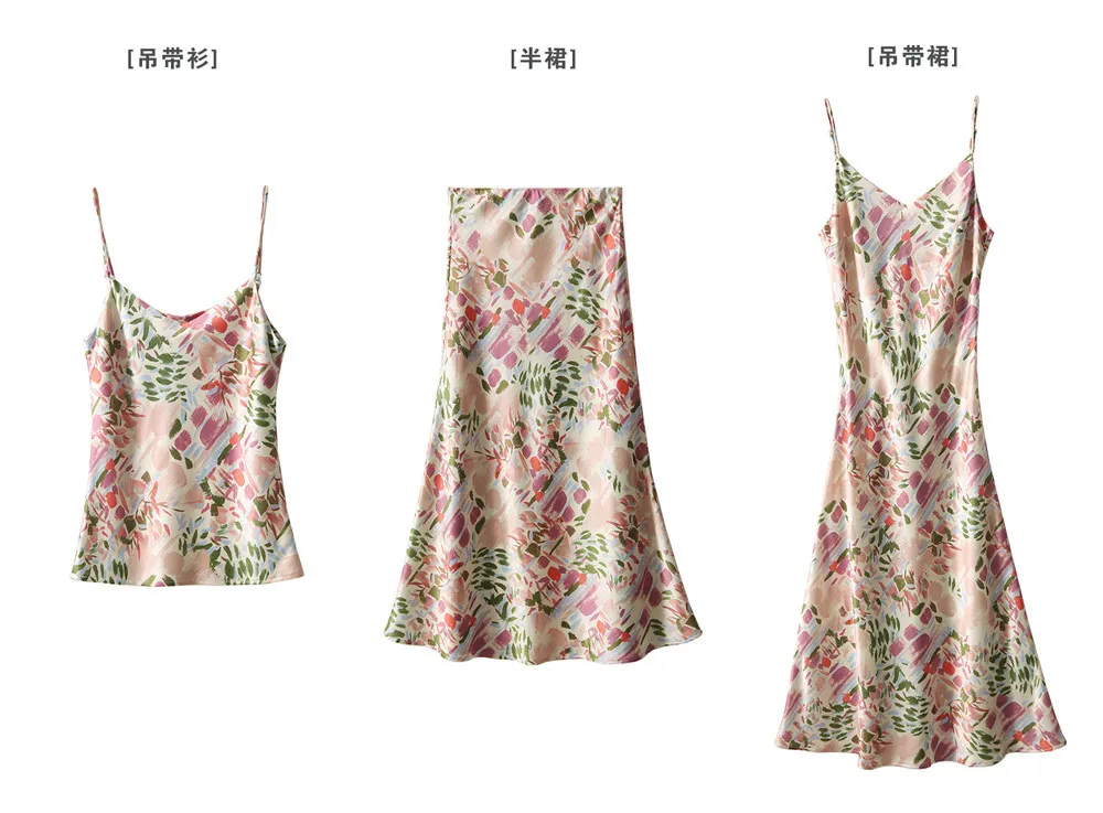 衣都精品- 新款真絲碎花油畫吊帶上衣