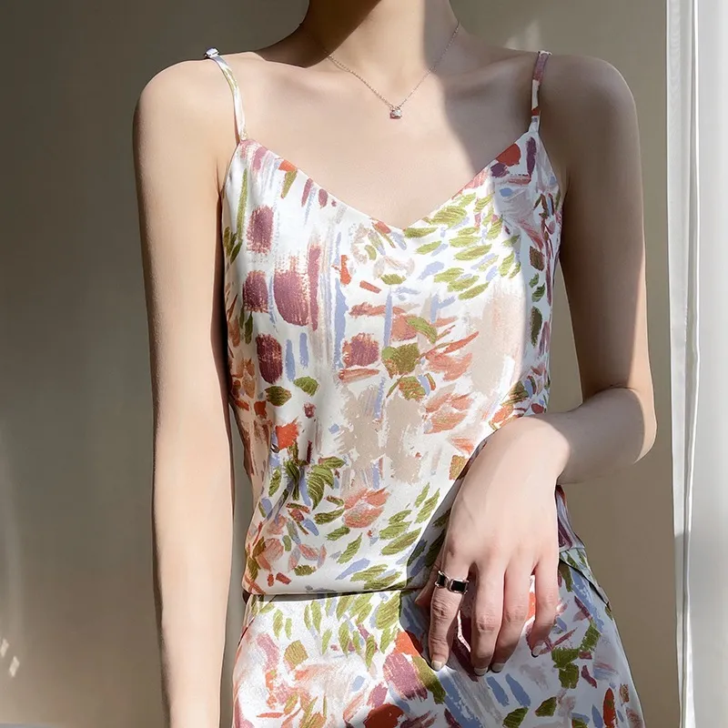 衣都精品- 新款真絲碎花油畫吊帶上衣