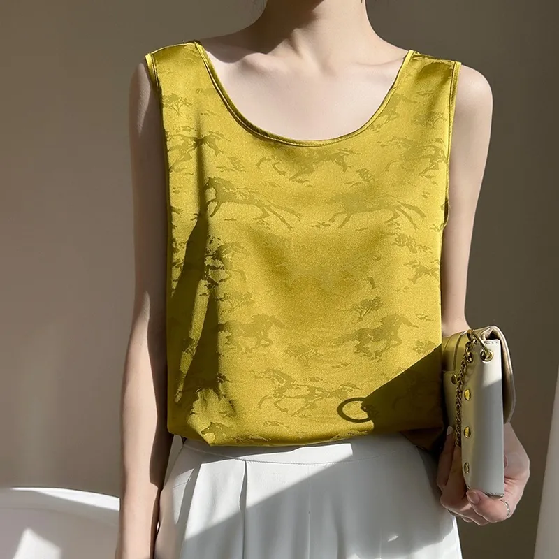 衣都精品- 新款真絲碎花油畫吊帶上衣