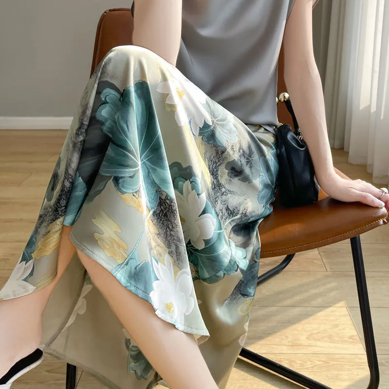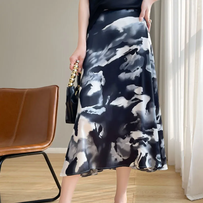 衣都精品- 新款缎面A字裙简约复古提花高腰半身裙