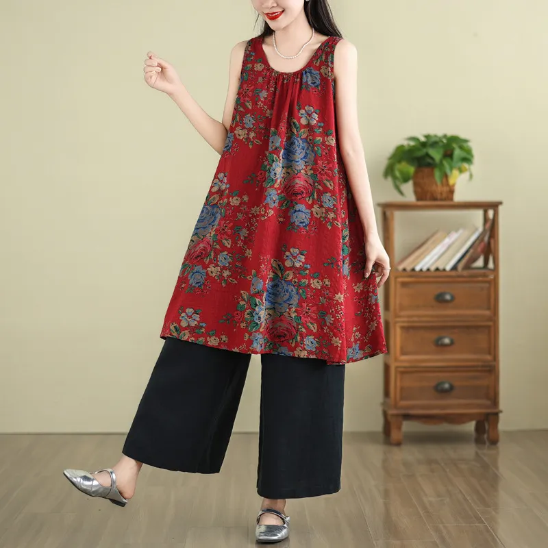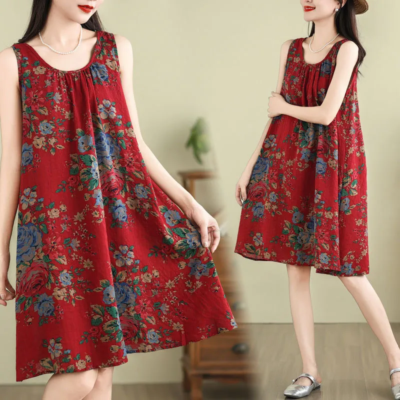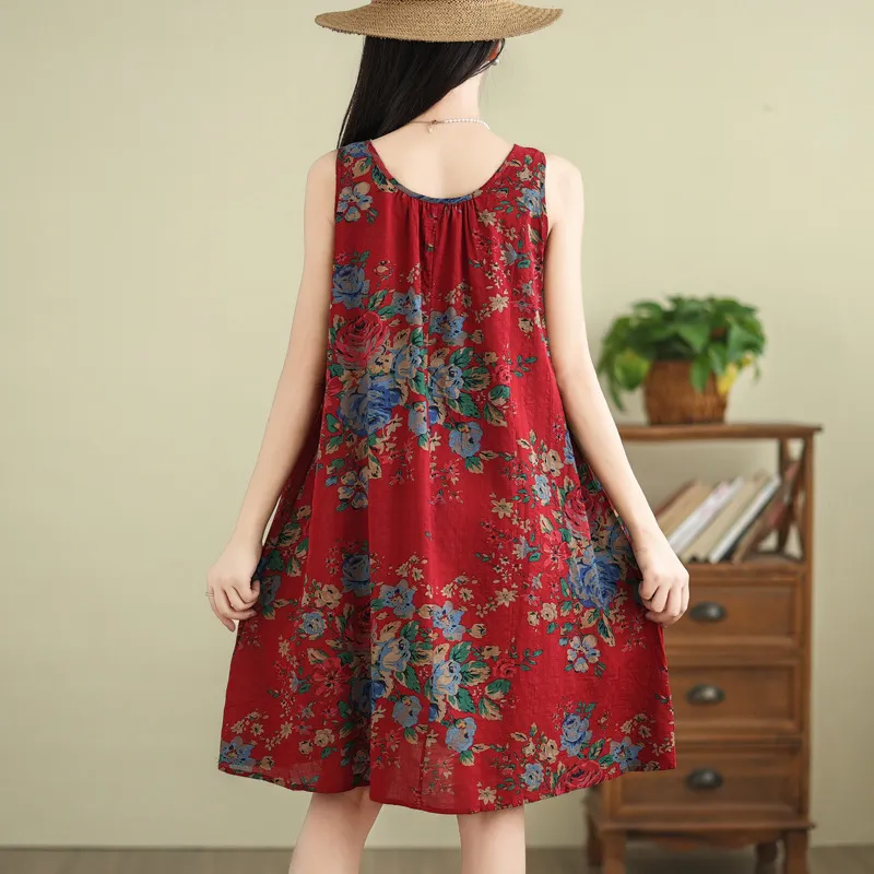 衣都精品- 新款大碼寬鬆吊帶無袖圓領印花連衣裙