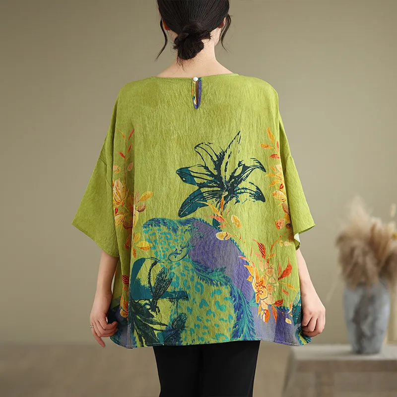 衣都精品- 新款民族風蝙蝠袖寬鬆大碼圓領上衣