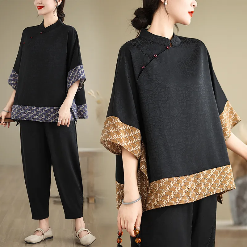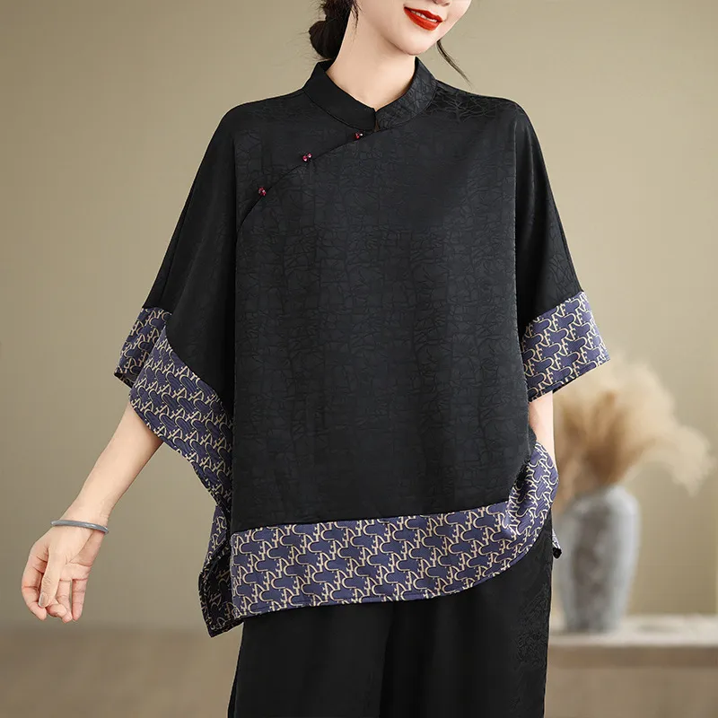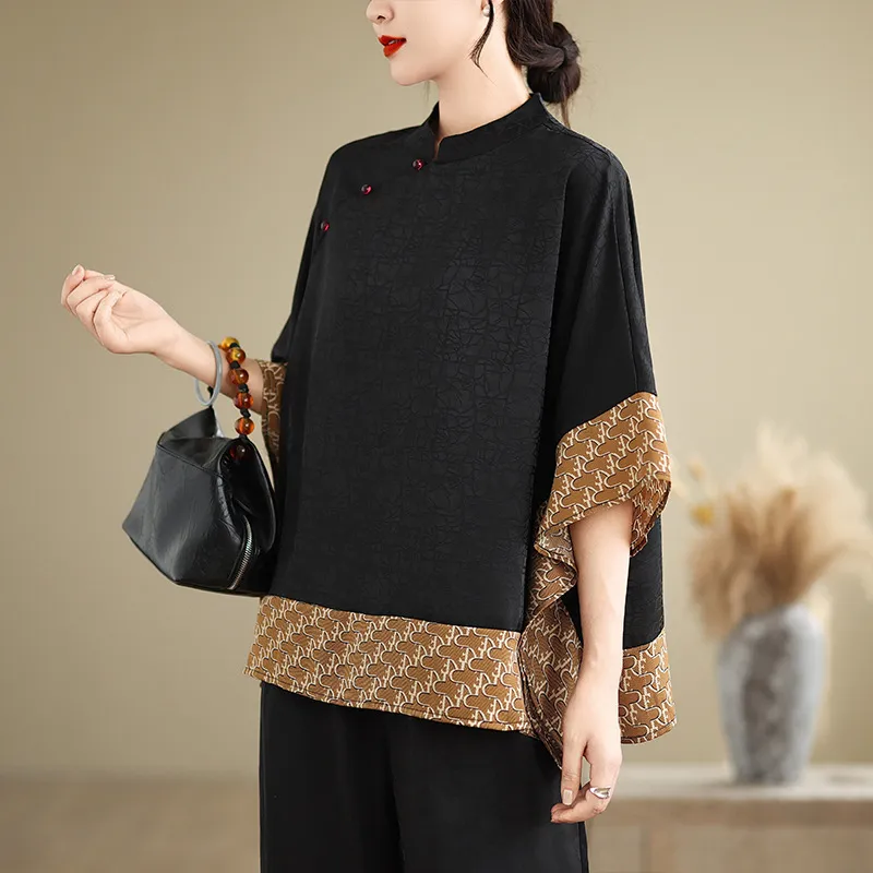 衣都精品- 新款民族風蝙蝠袖寬鬆大碼圓領上衣