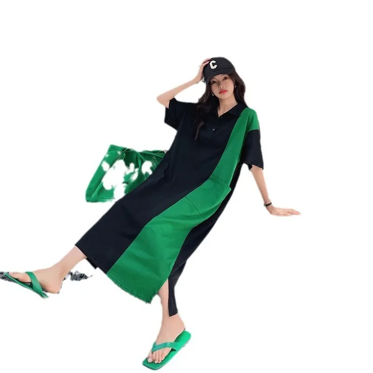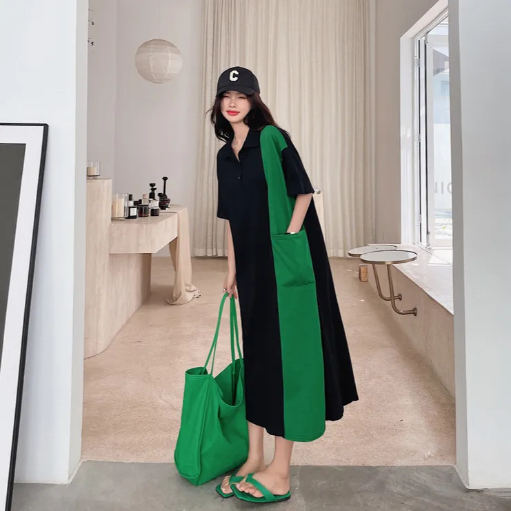 衣都精品- 新款大碼拼接撞色設計POLO領寬鬆連衣裙