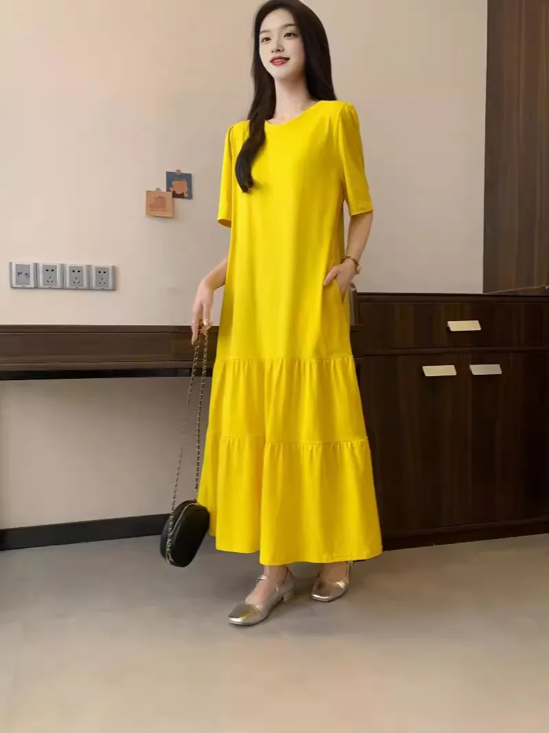 衣都精品- 新款慵懶風垂墜感氣質大碼顯瘦連衣裙
