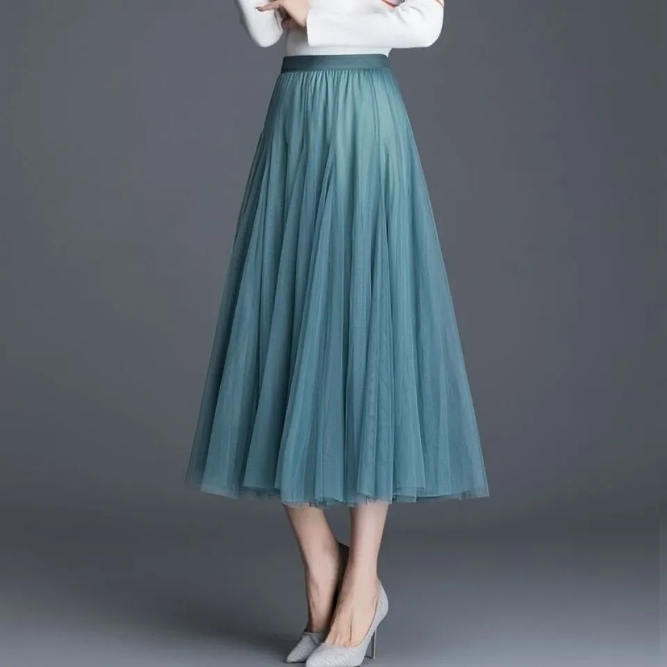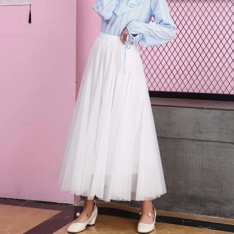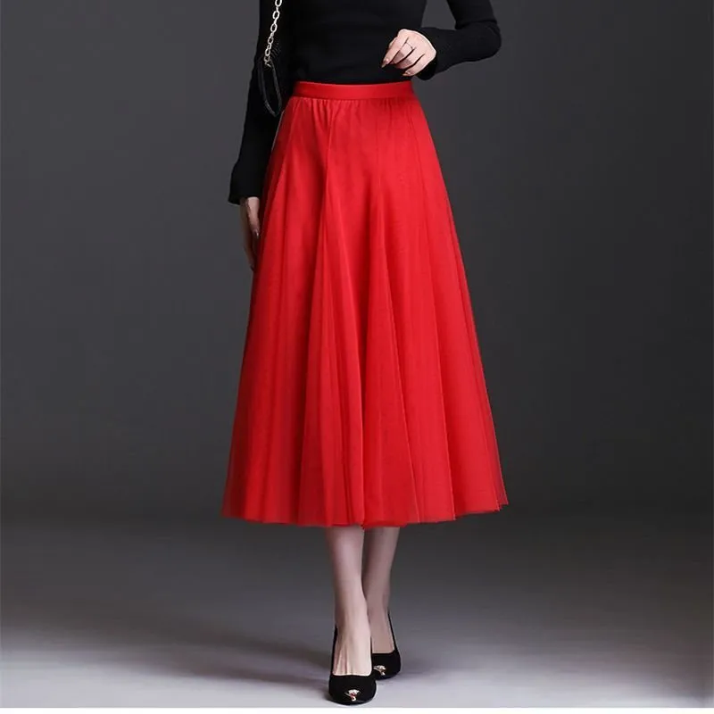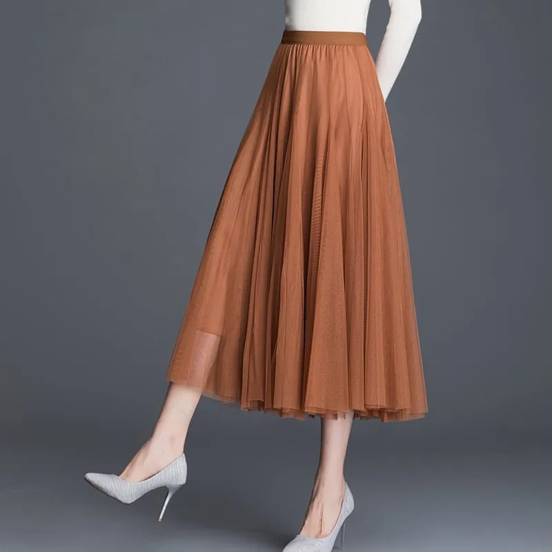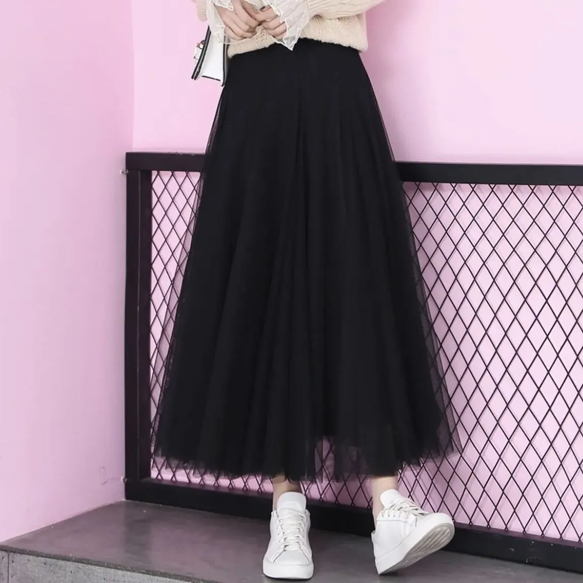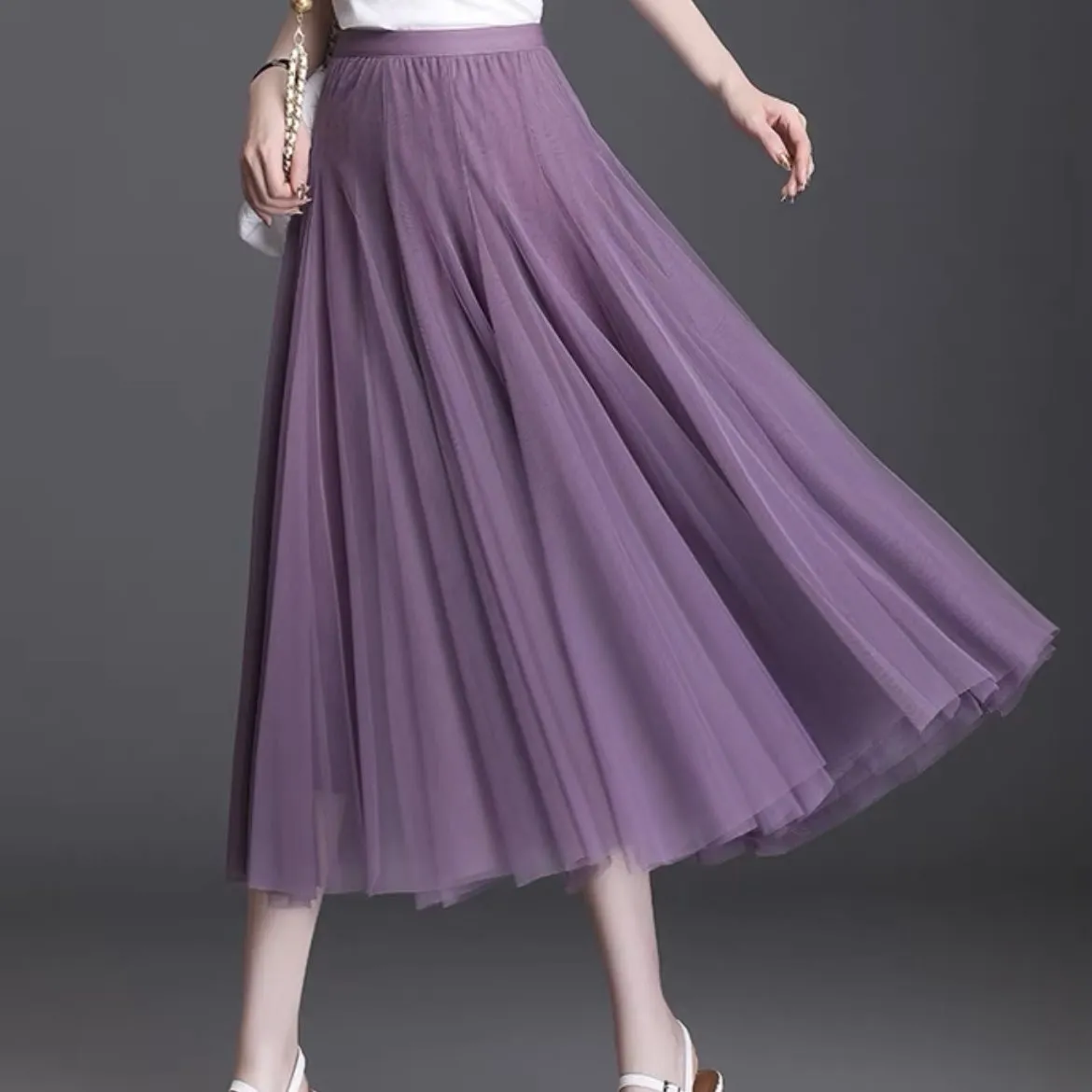 衣都精品- 新款高腰洋氣顯瘦遮肉百褶網紗半身裙
