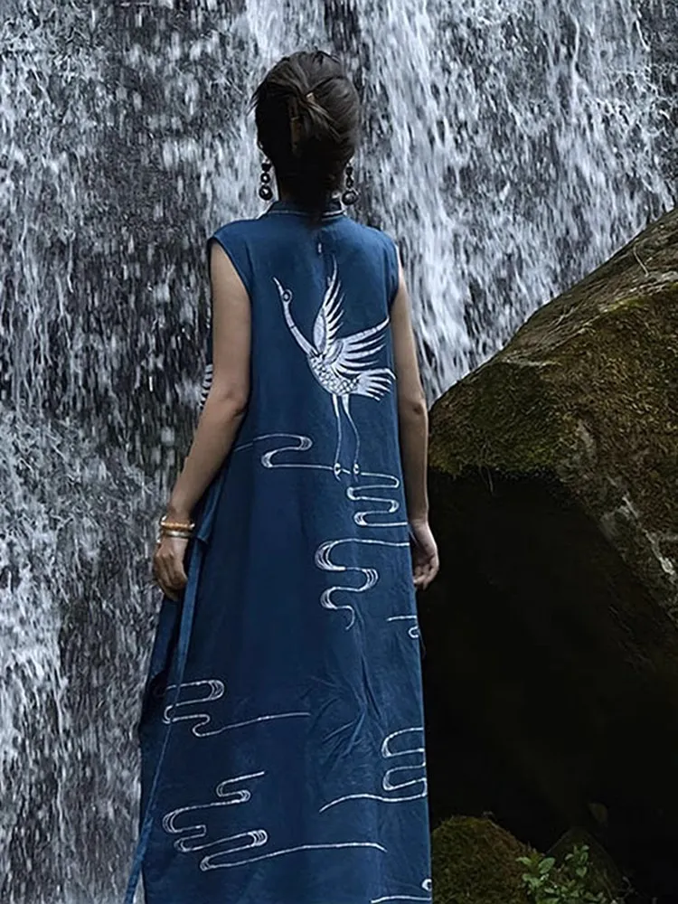 衣都精品- 新款時尚氣質中國風無袖印花連衣裙
