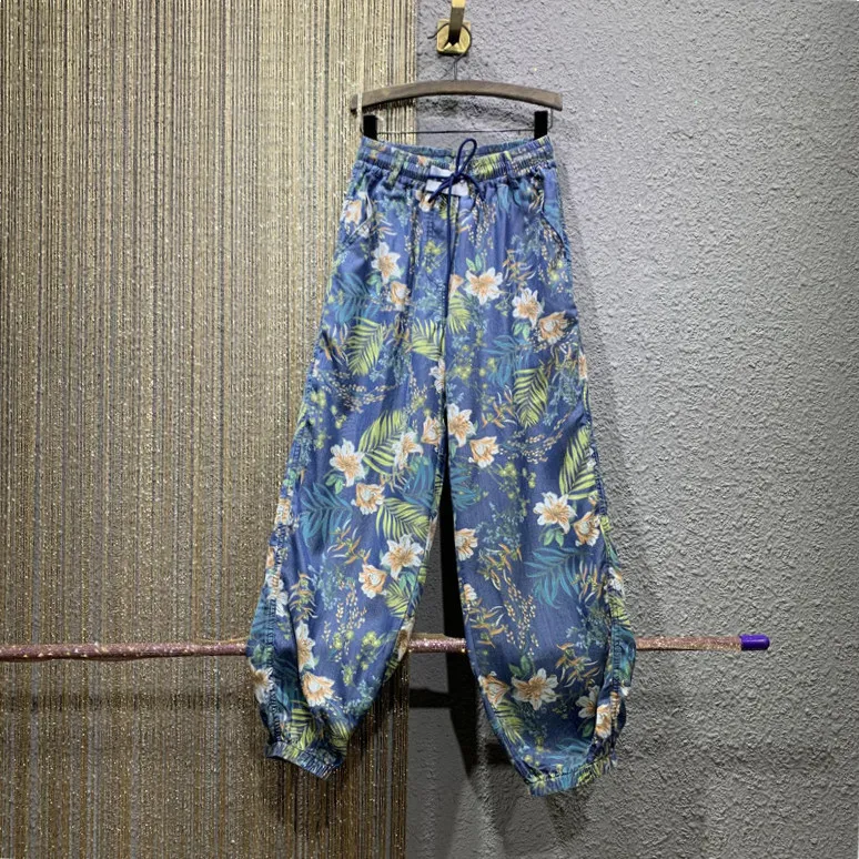 衣都精品- 新款鬆緊高腰復古印花束腳牛仔褲