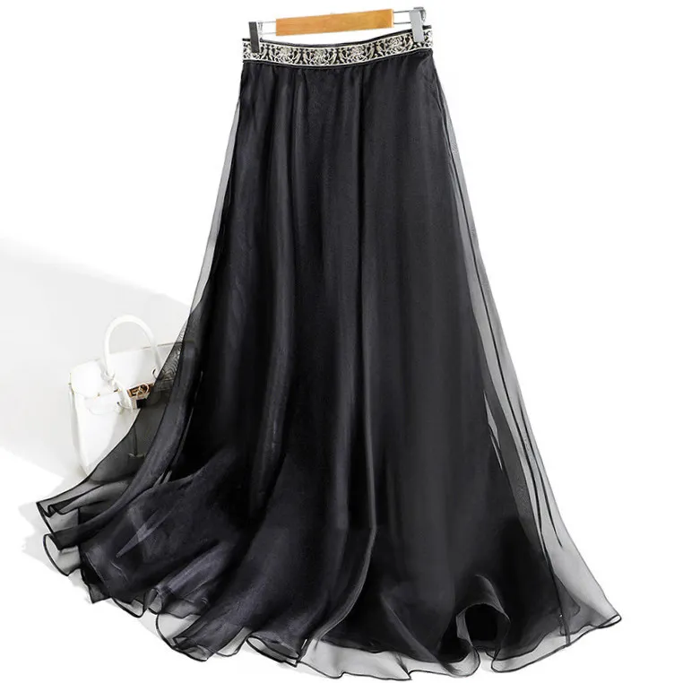 衣都精品- 新款腰間刺繡霧感輕薄絲質半身裙