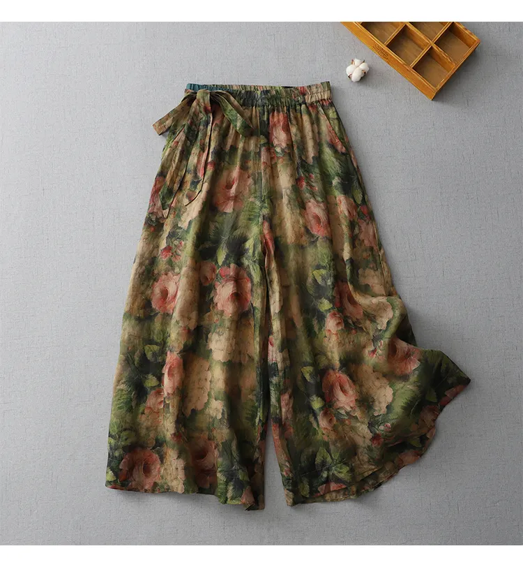 衣都精品- 新款鬆緊高腰復古印花束腳牛仔褲