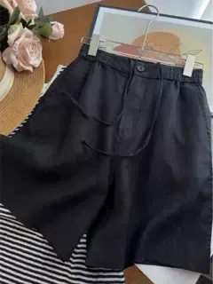 衣都精品- 新款繫帶鬆緊腰百搭薄款直筒短褲