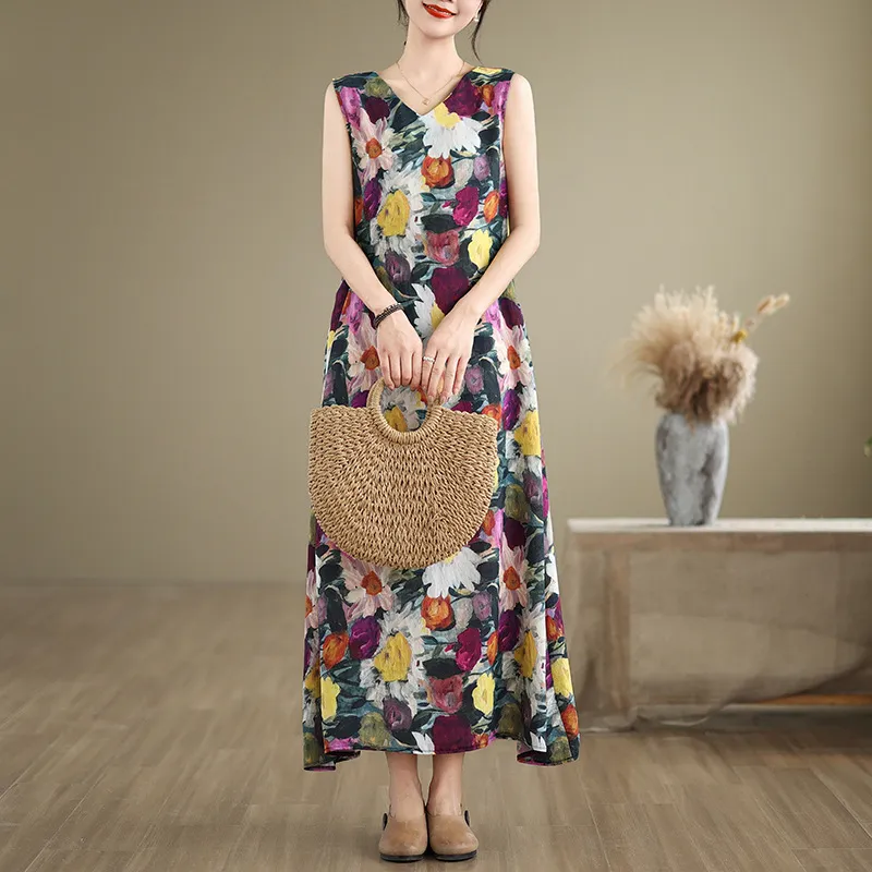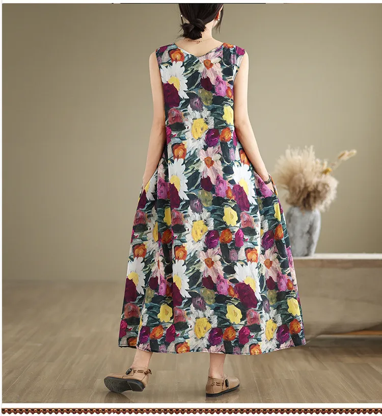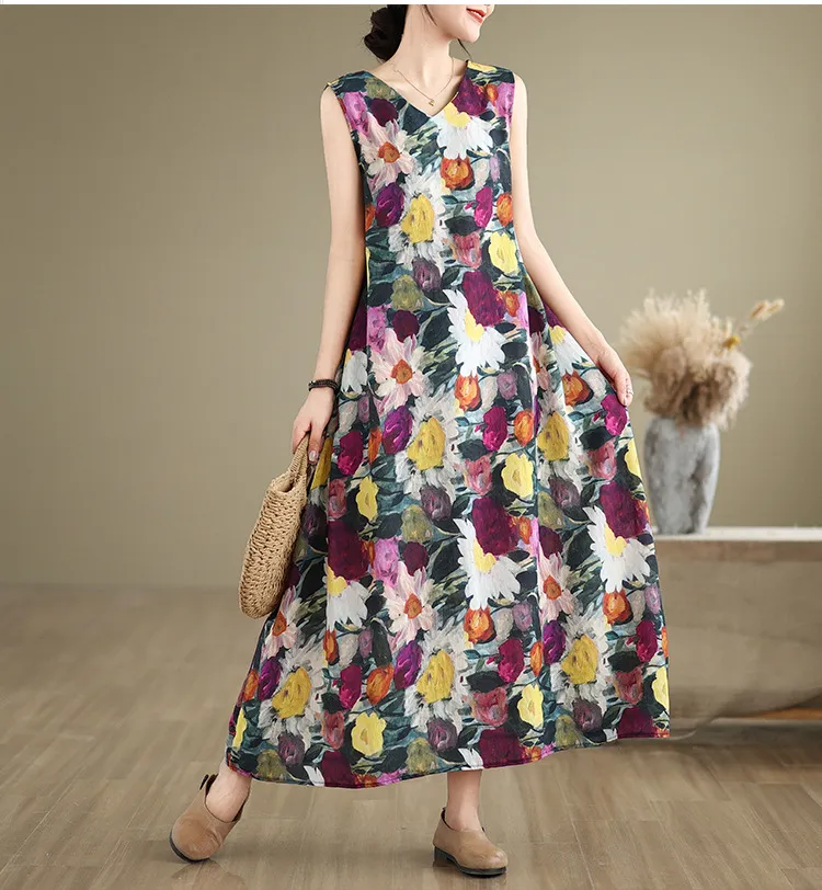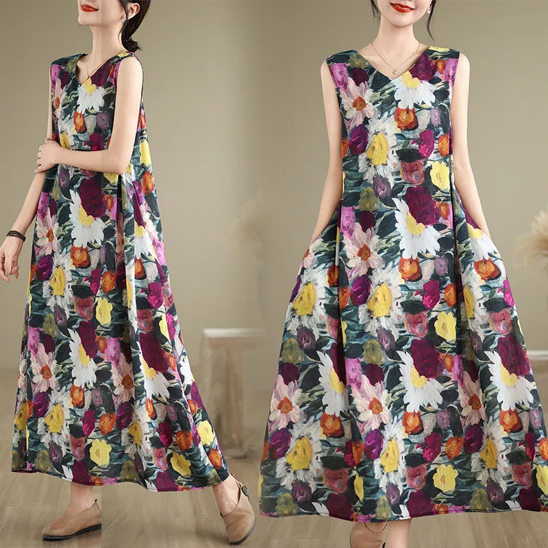 衣都精品- 新款大碼簡約無袖V領背心長款連衣裙